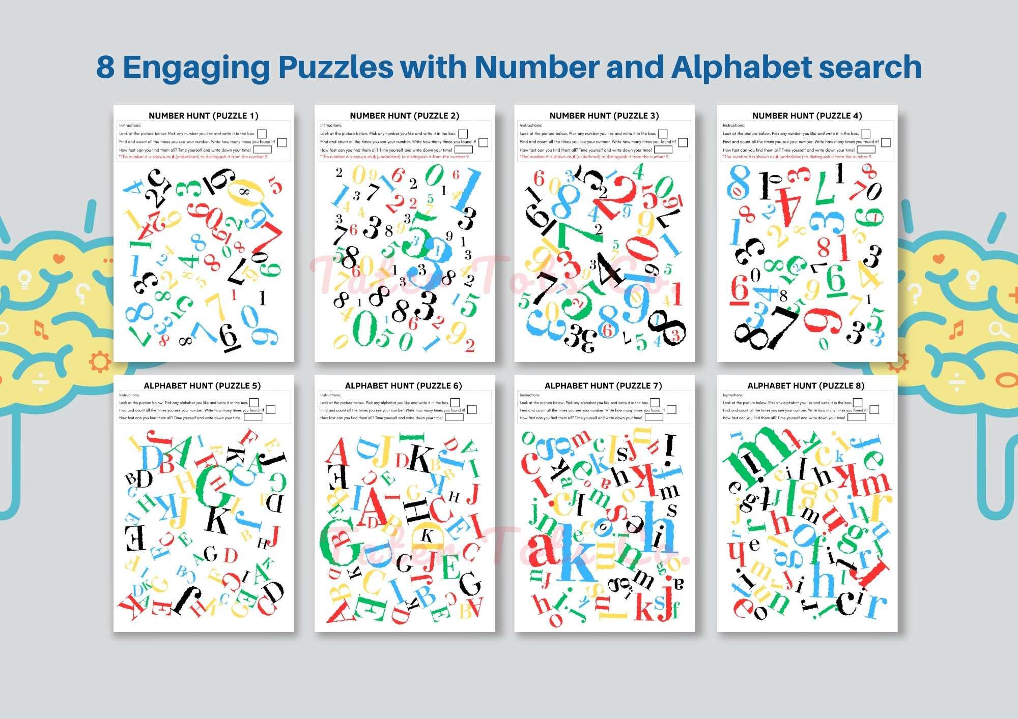 Number and Alphabet Visual Search Puzzles: Kids Learning Activity (PDF Download)