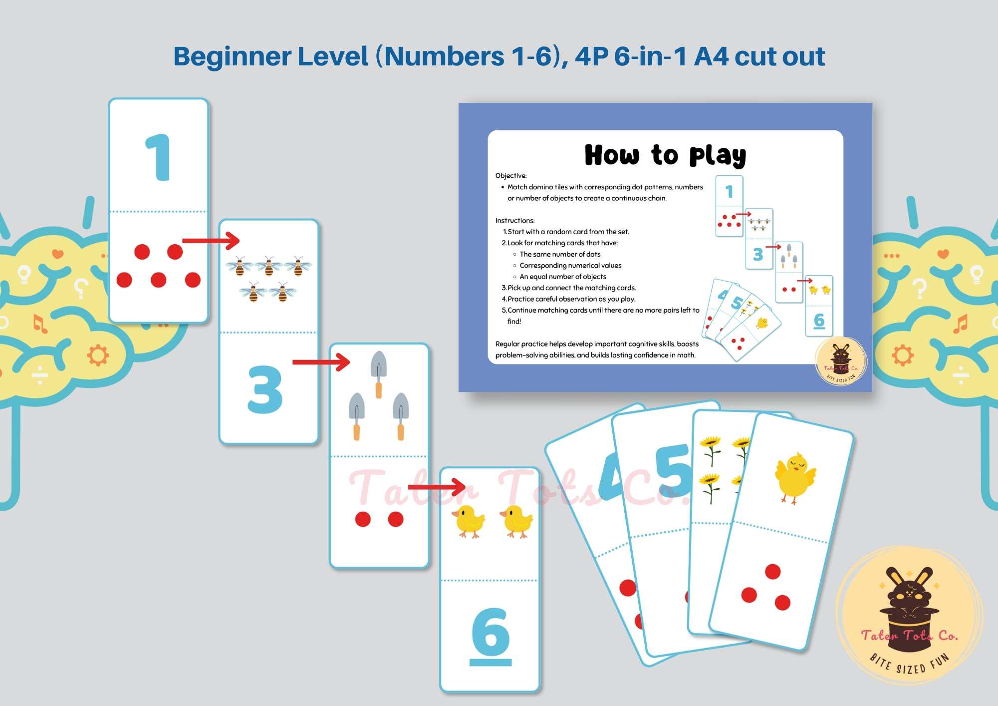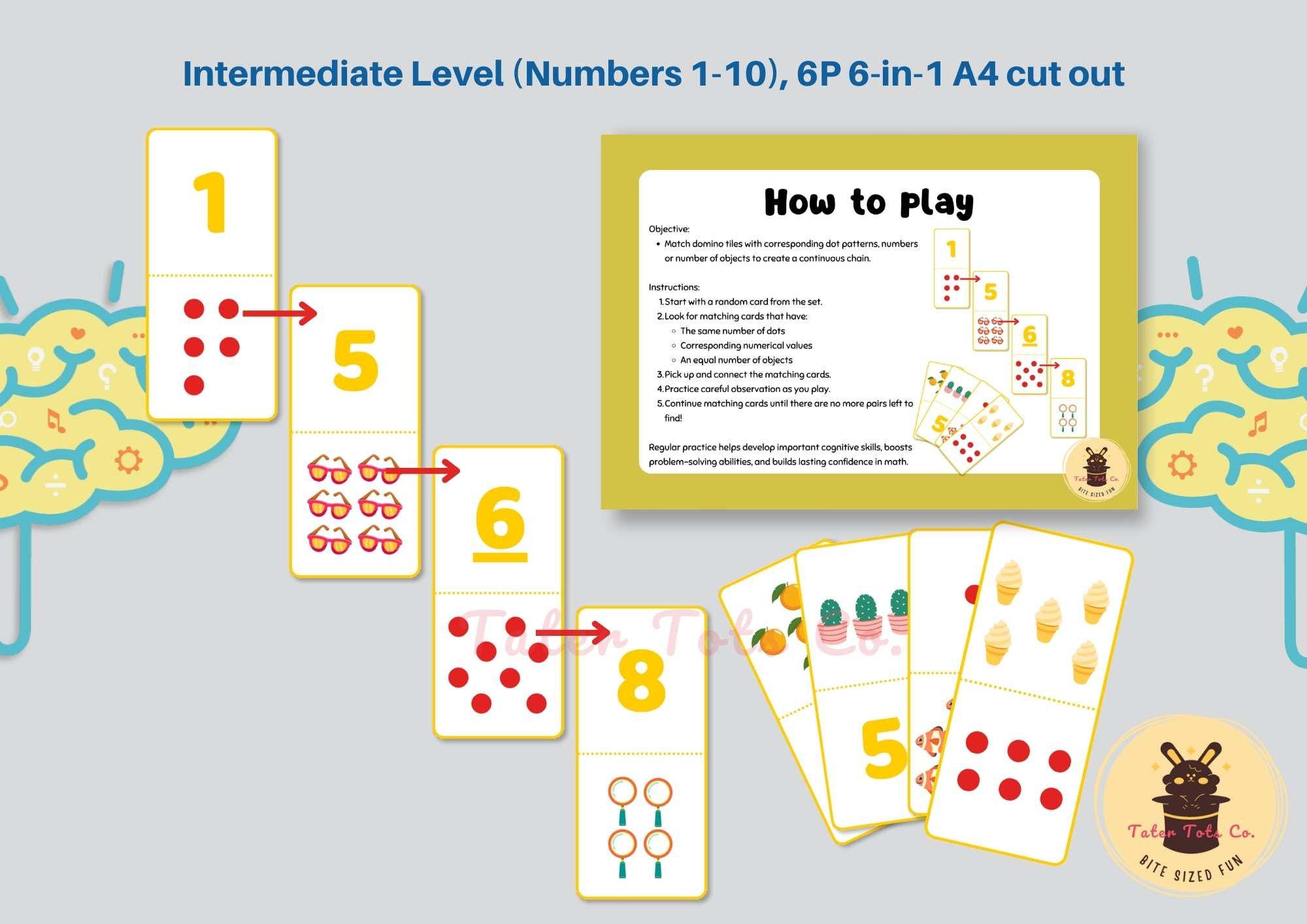 Discover the fun and educational benefits of our Number Domino Math Card Game. This engaging game is designed for young learners to enhance their early math skills through interactive play. Children can practice number recognition, one-to-one correspondence, and basic arithmetic operations with this stack of domino cards featuring numbers and dot patterns.