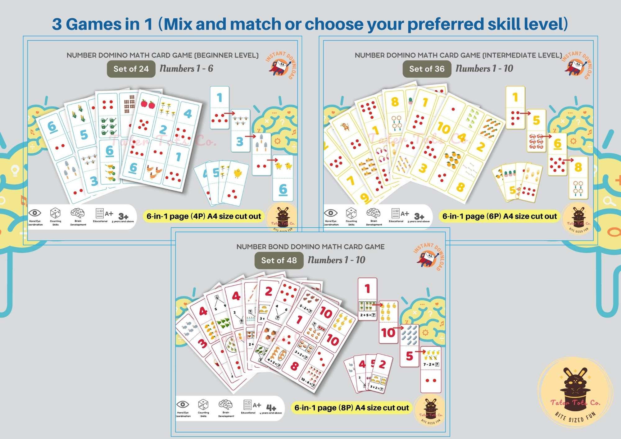 • Number Bond Chain Domino Math Card Game (3 levels) A4 cut out (18P 6-in-1 page)