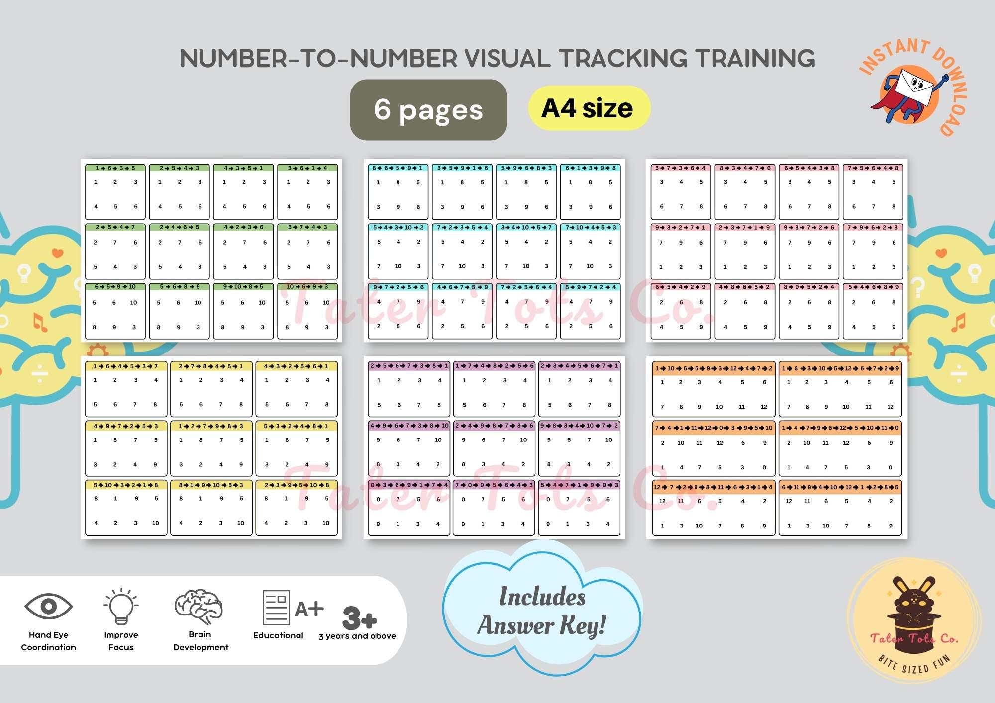 • Number-to-number Visual Tracking Concentration Training (6 pages) + Answer Key