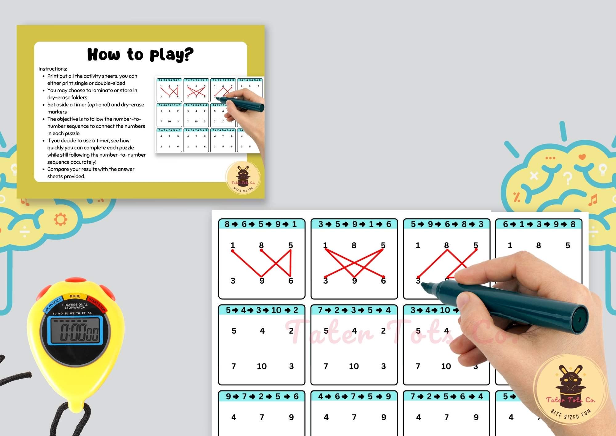Number-to-Number Visual Tracking Puzzles - Boost Memory & Focus with Fun Brain Games | PDF with Answer Key