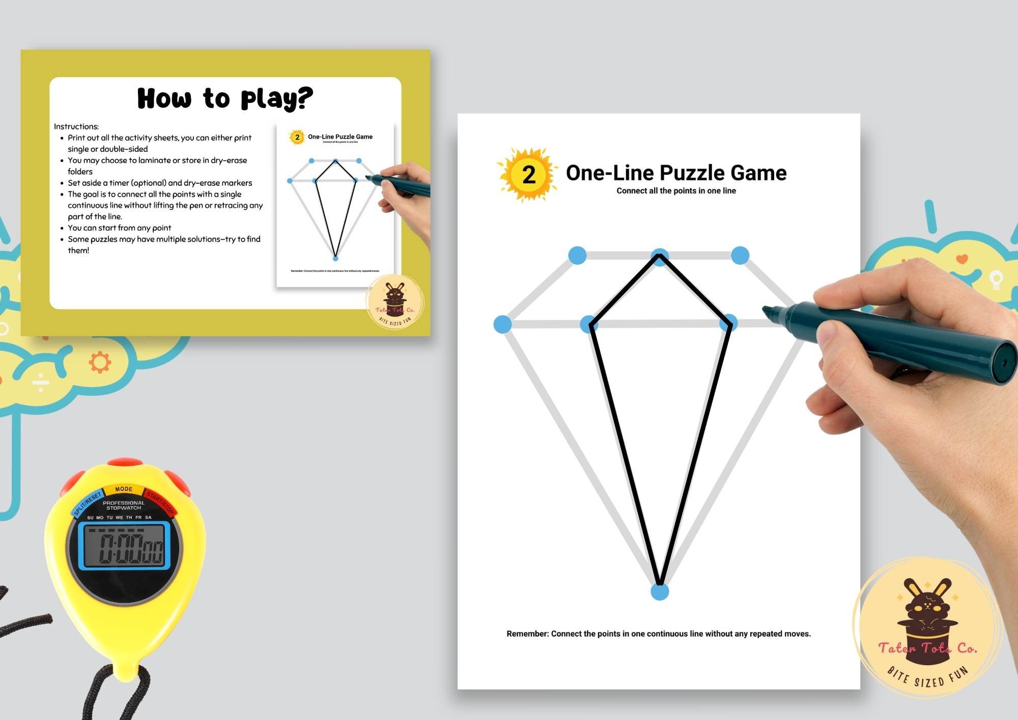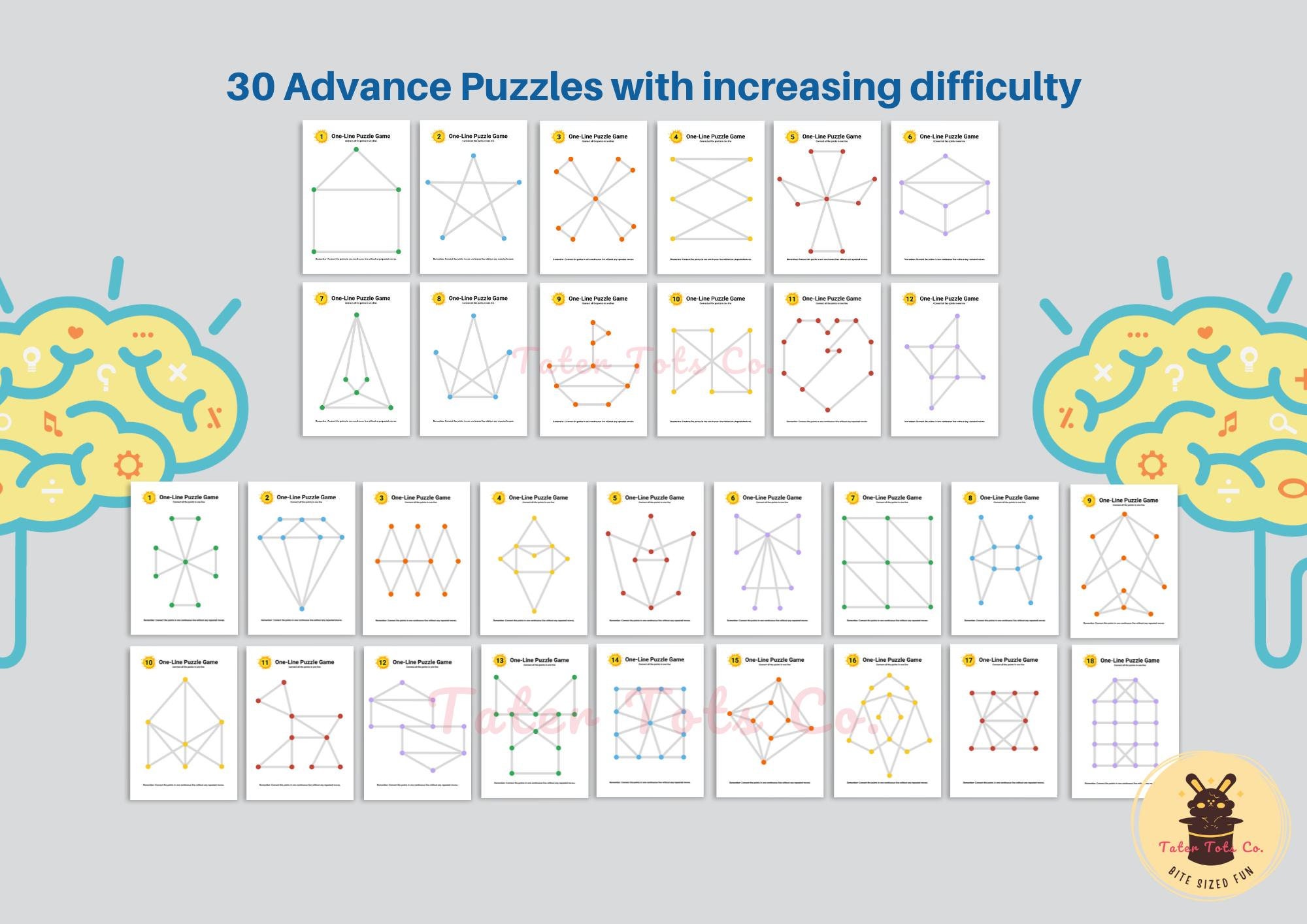 This collection features 30 engaging one-line puzzles specifically designed to enhance brain development and sharpen focus. You can instantly download, print, and start using them right away.