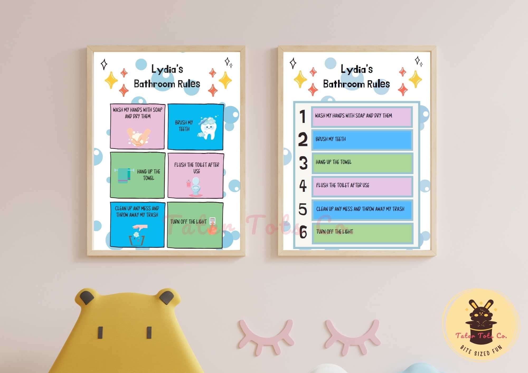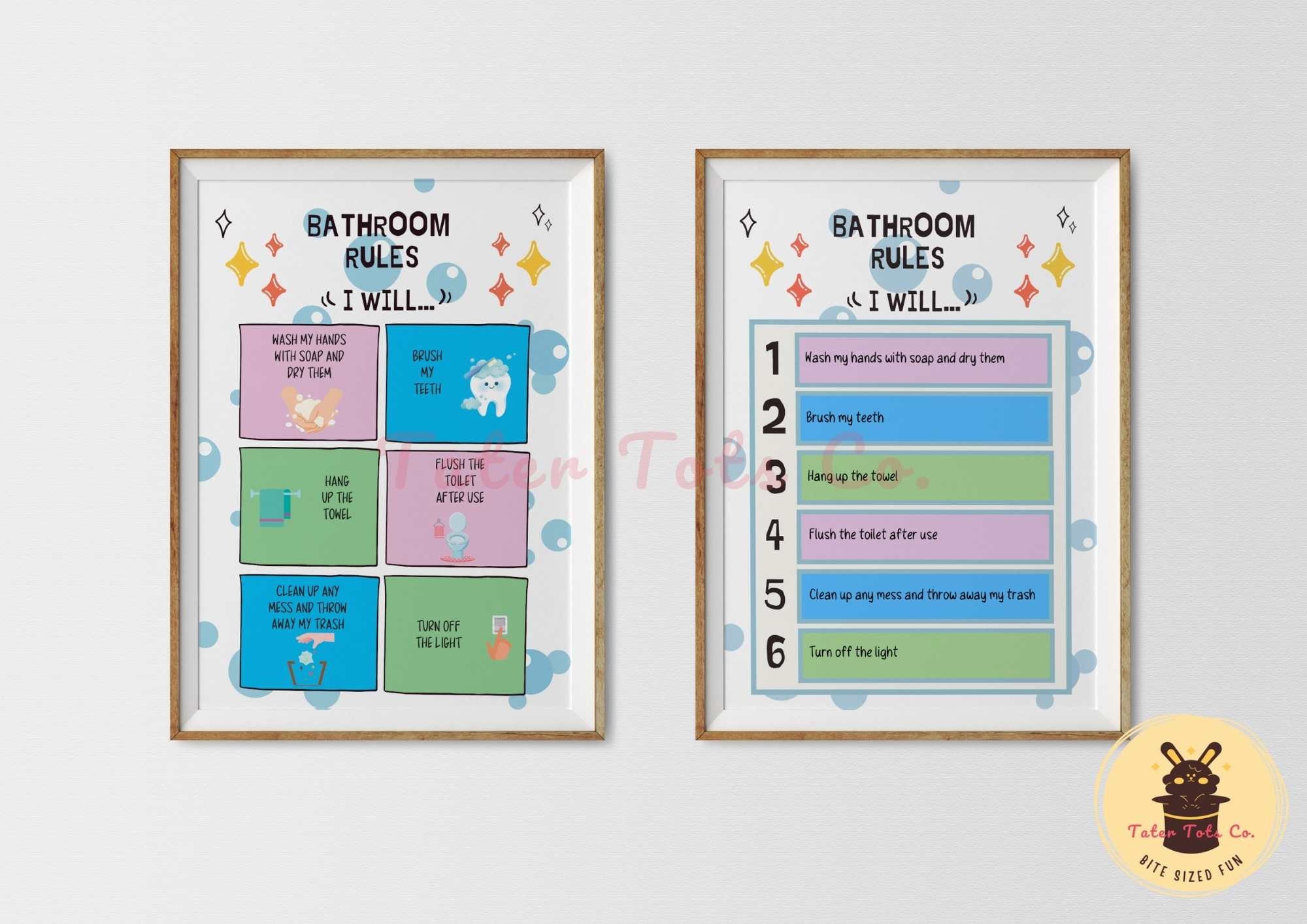 Personalized Bathroom Editable Rules, House Restroom Sign Toilet Training Kids Daily Routine, Instant Download