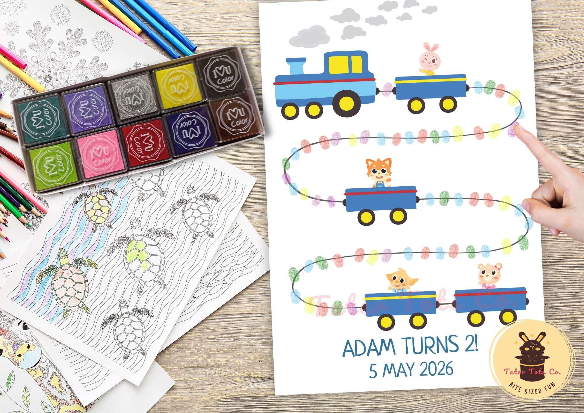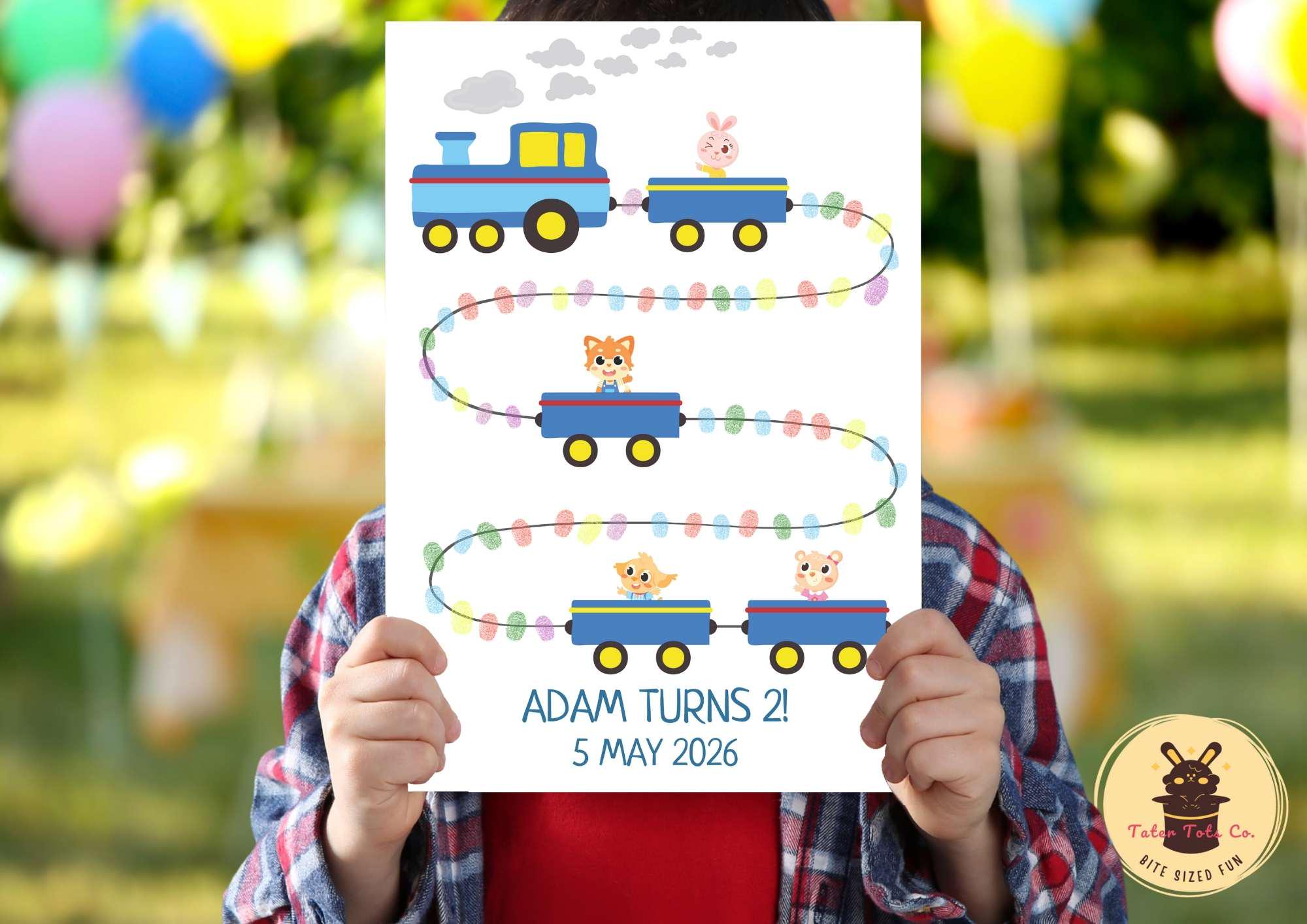 Personalized Cute Animal Choo Choo Train Finger print Train Track for Birthday Milestone or Preschool Activity Instant Download PDF