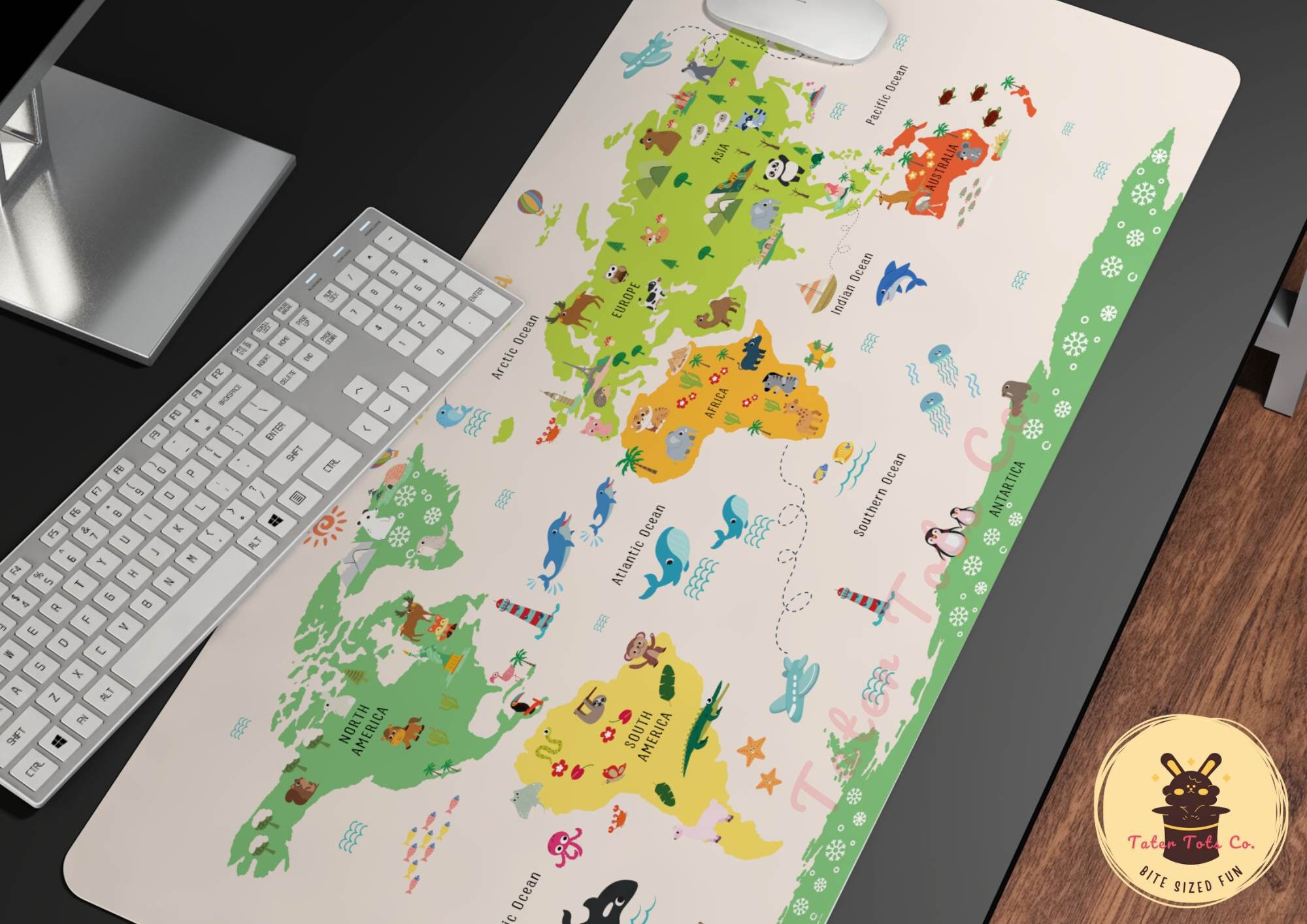 Personalized Cute Animal World Map for Kids Custom desk mat Sublimation PNG, Customized mouse pad Gift (Custom Order)