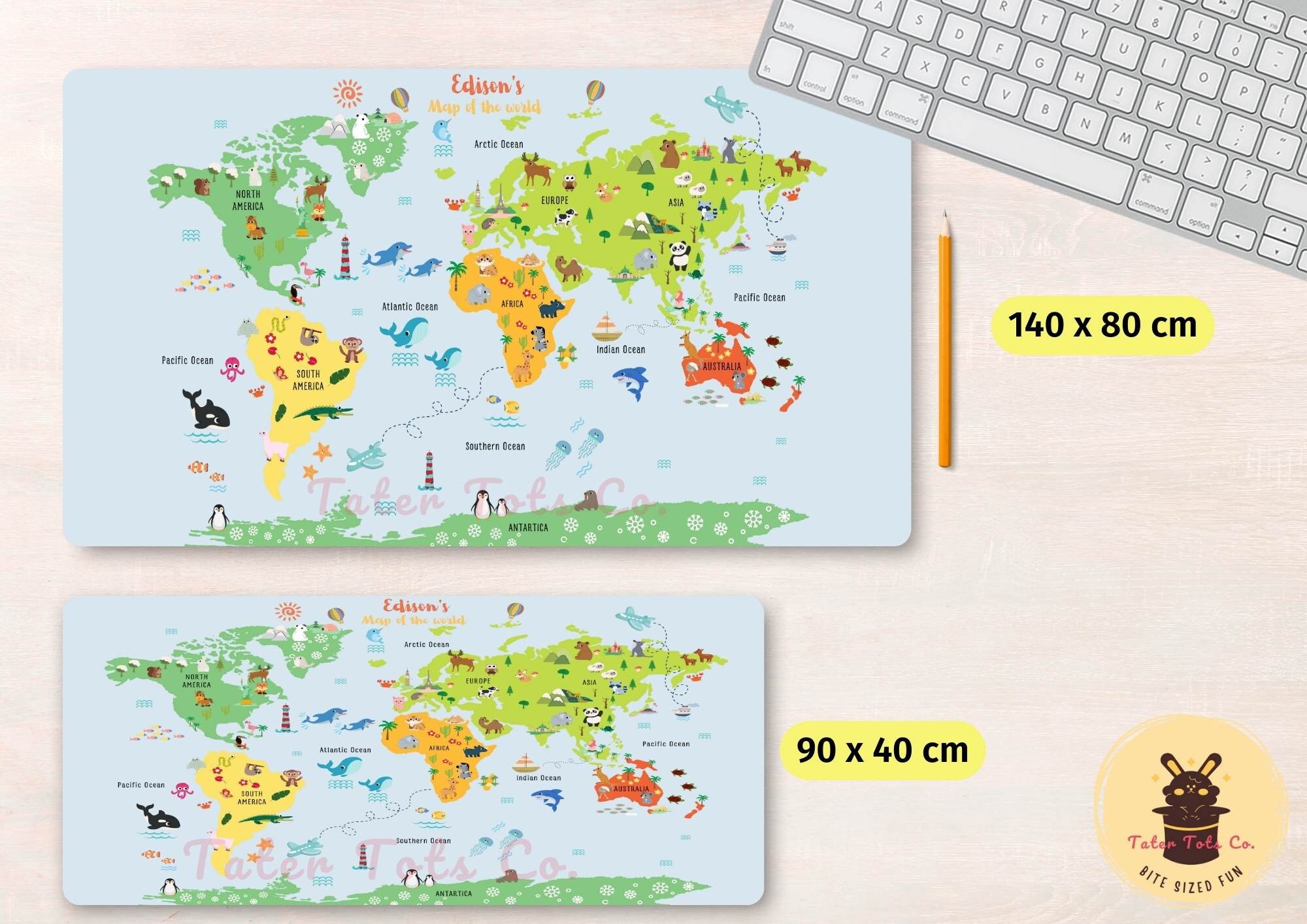 • Personalized Cute Animal World Map for Kids Custom desk mat table/desk mat Sublimation design