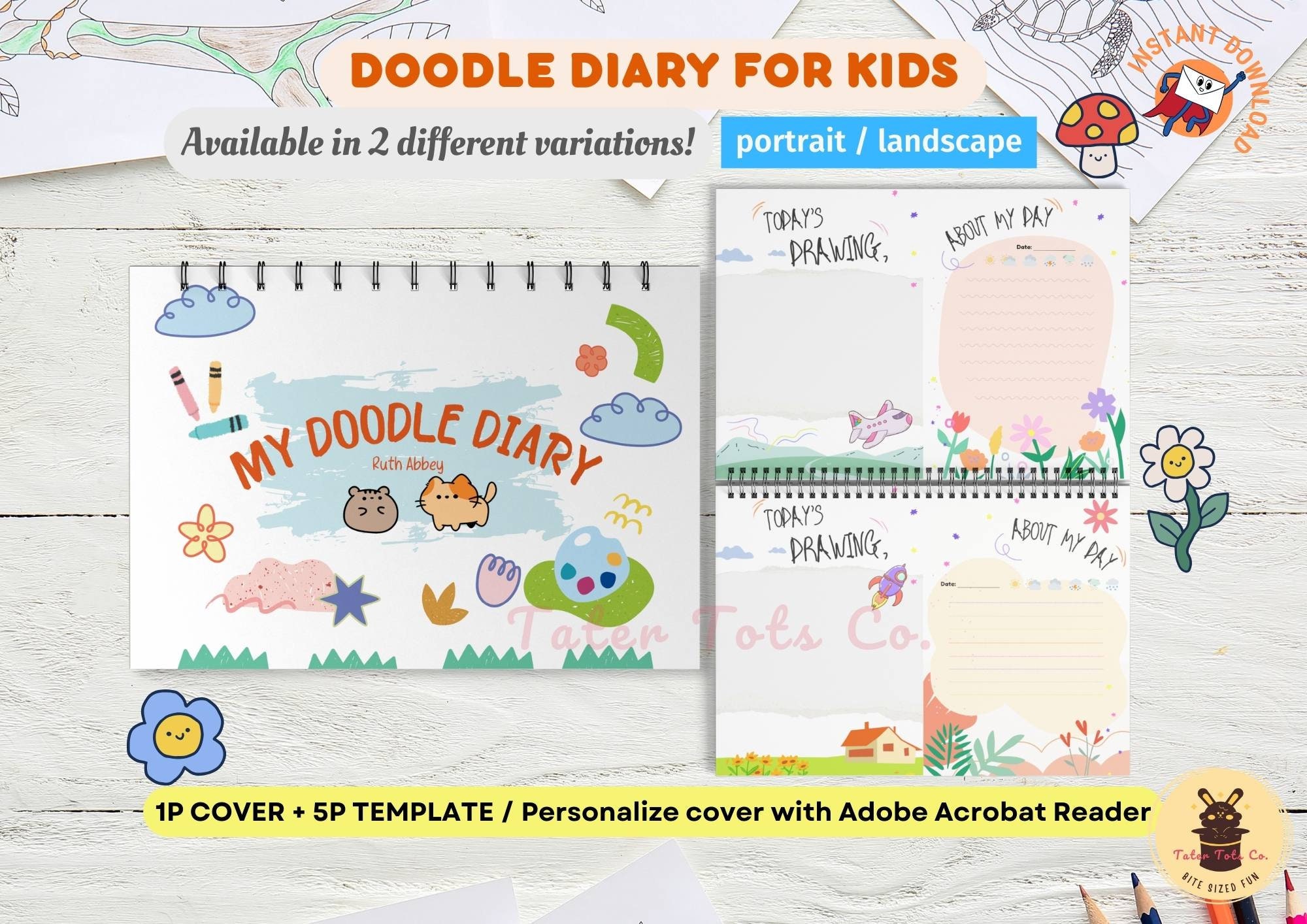 Personalized Kids Doodle Diary: Creative Writing, Mindfulness (Instant PDF Download)