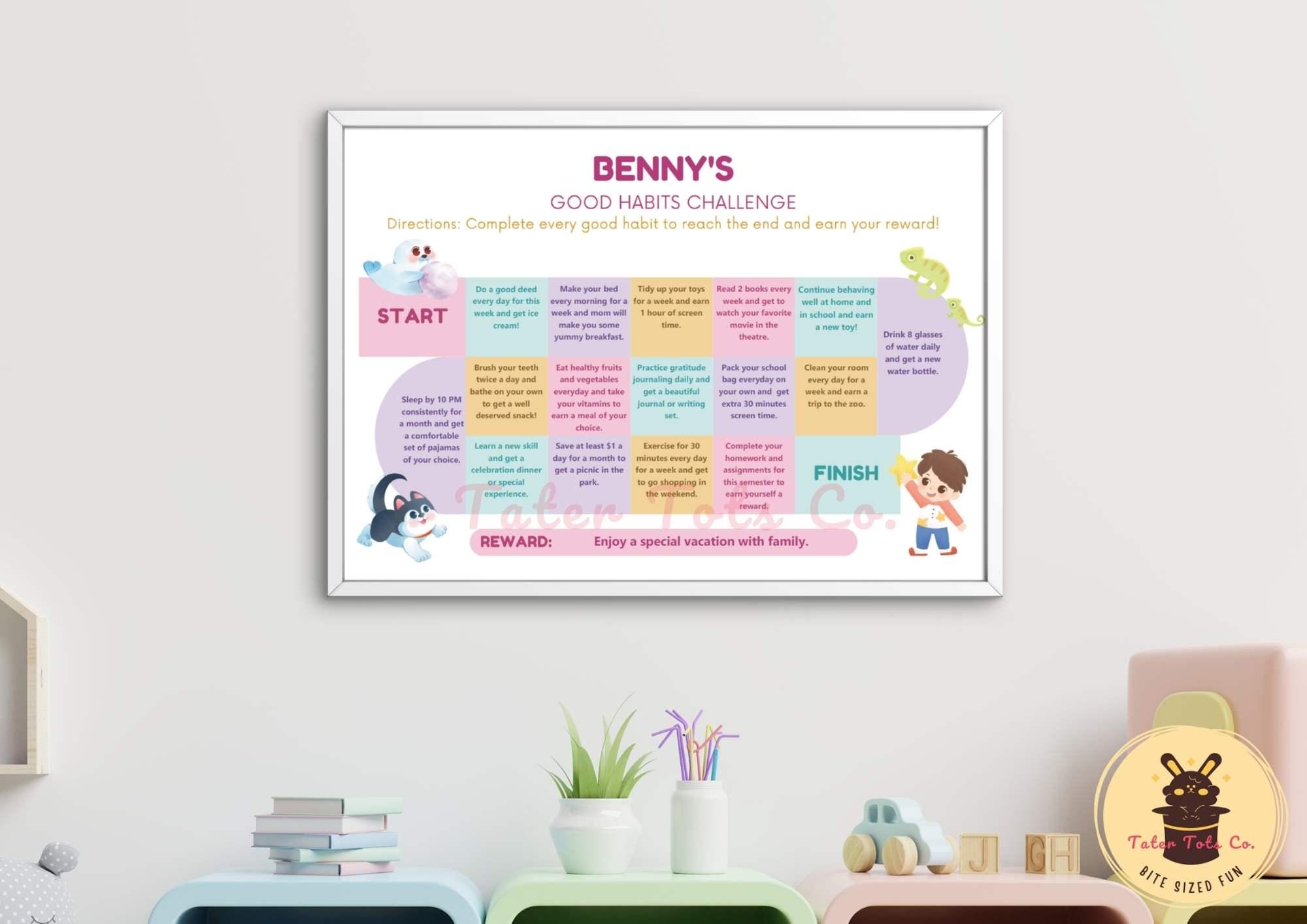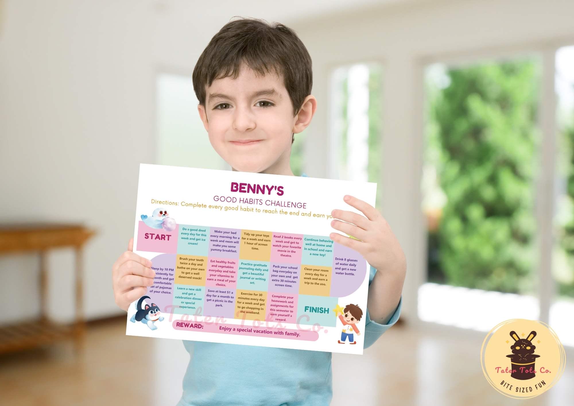 Personalized Kids' Good Habits Challenge Chart: Motivational Reward Tracker (PDF)