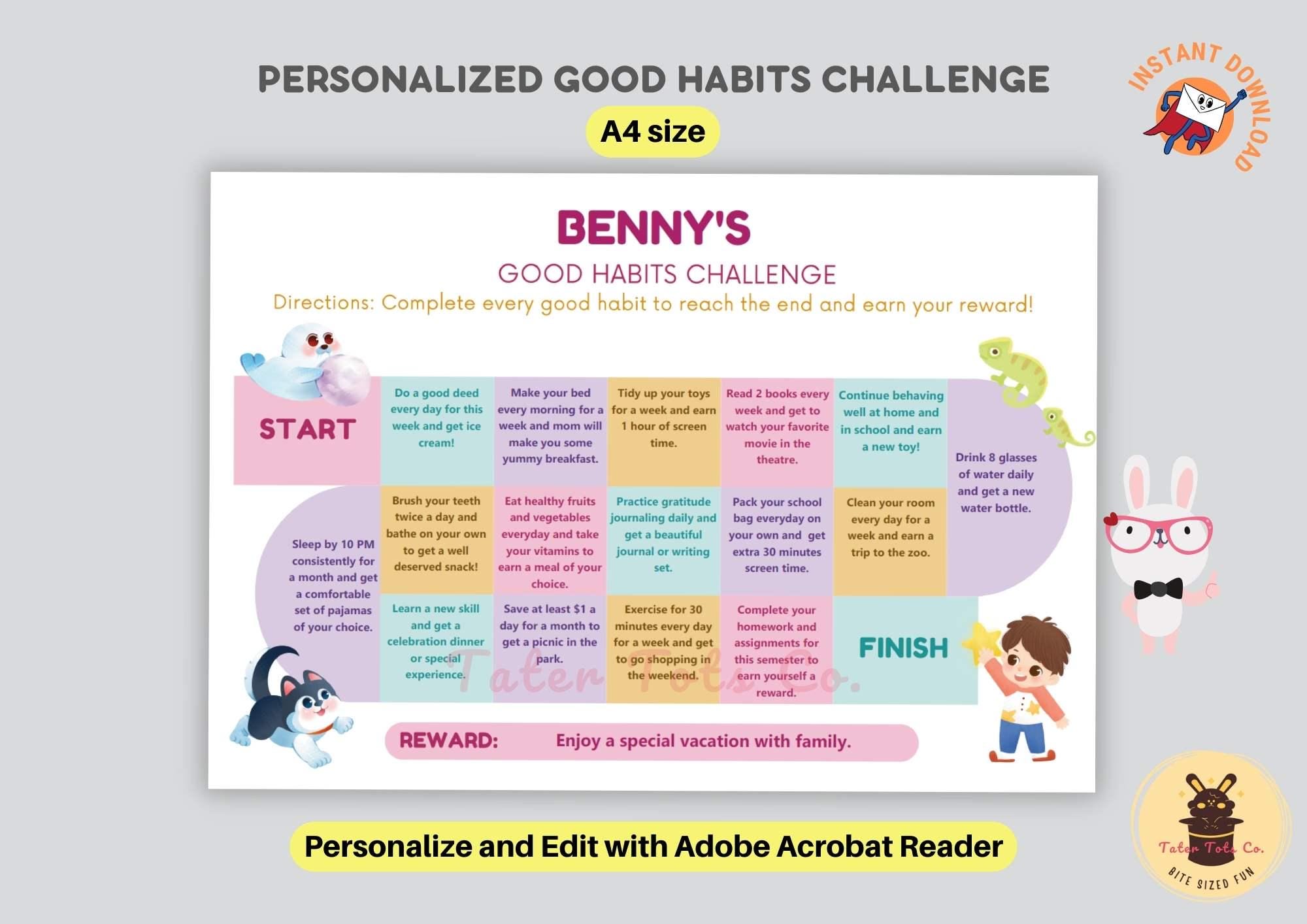 • Personalized Editable Good Habits Challenge for Kids A4 size