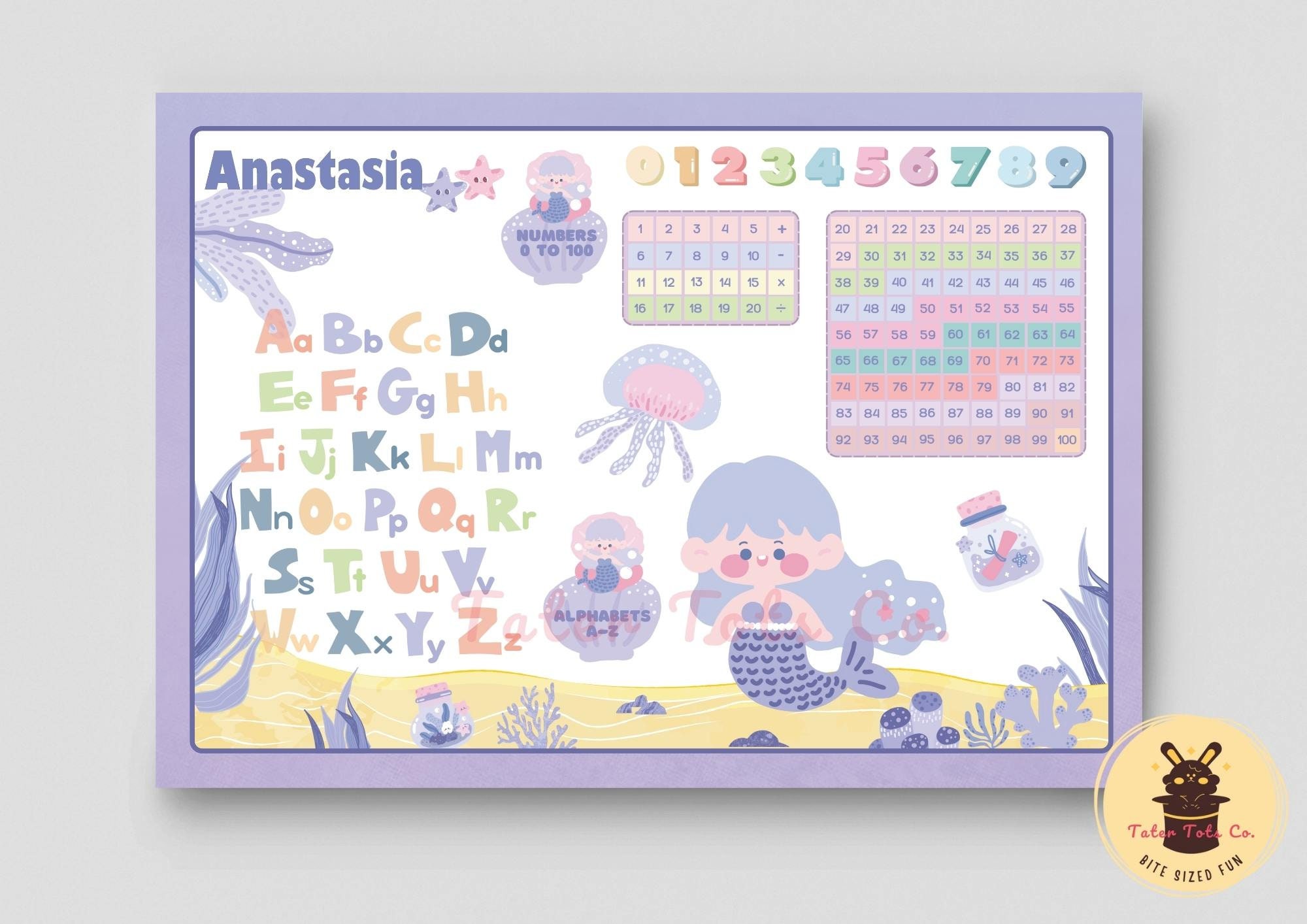 Enhance your child's learning experience with our delightful Cute Purple Little Mermaid Under the Sea Alphabet and Numbers 0 to 100 Educational Poster! Featuring charming hand-drawn illustrations of coral and a mermaid, this poster offers an interactive way for kids to master their ABCs and count from 0 to 100.