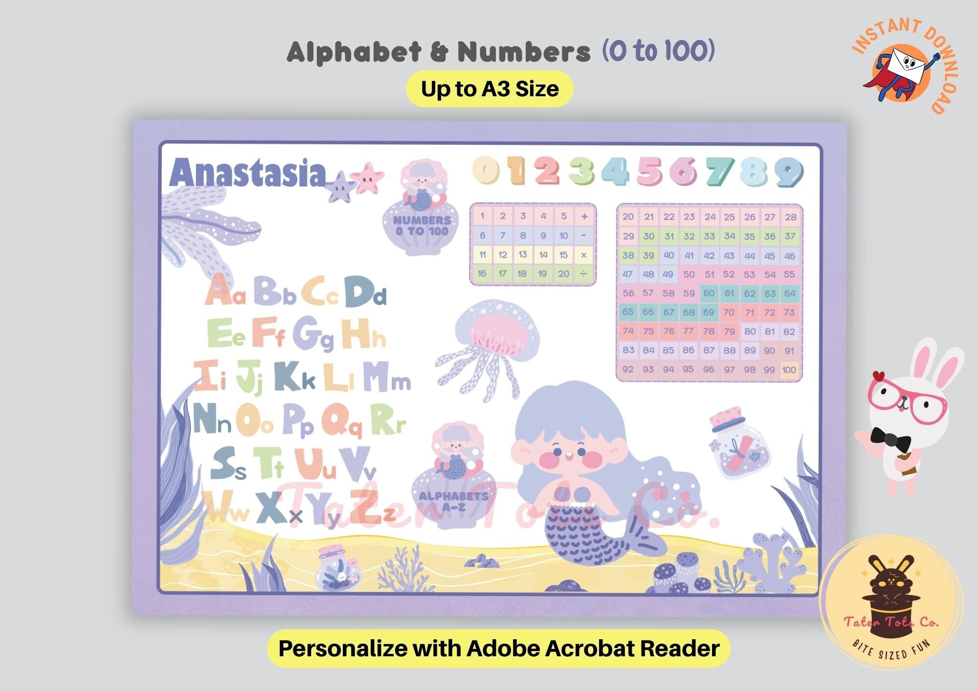 Personalized Mermaid Alphabet Numbers Poster: Under the Sea Learning (PDF)
