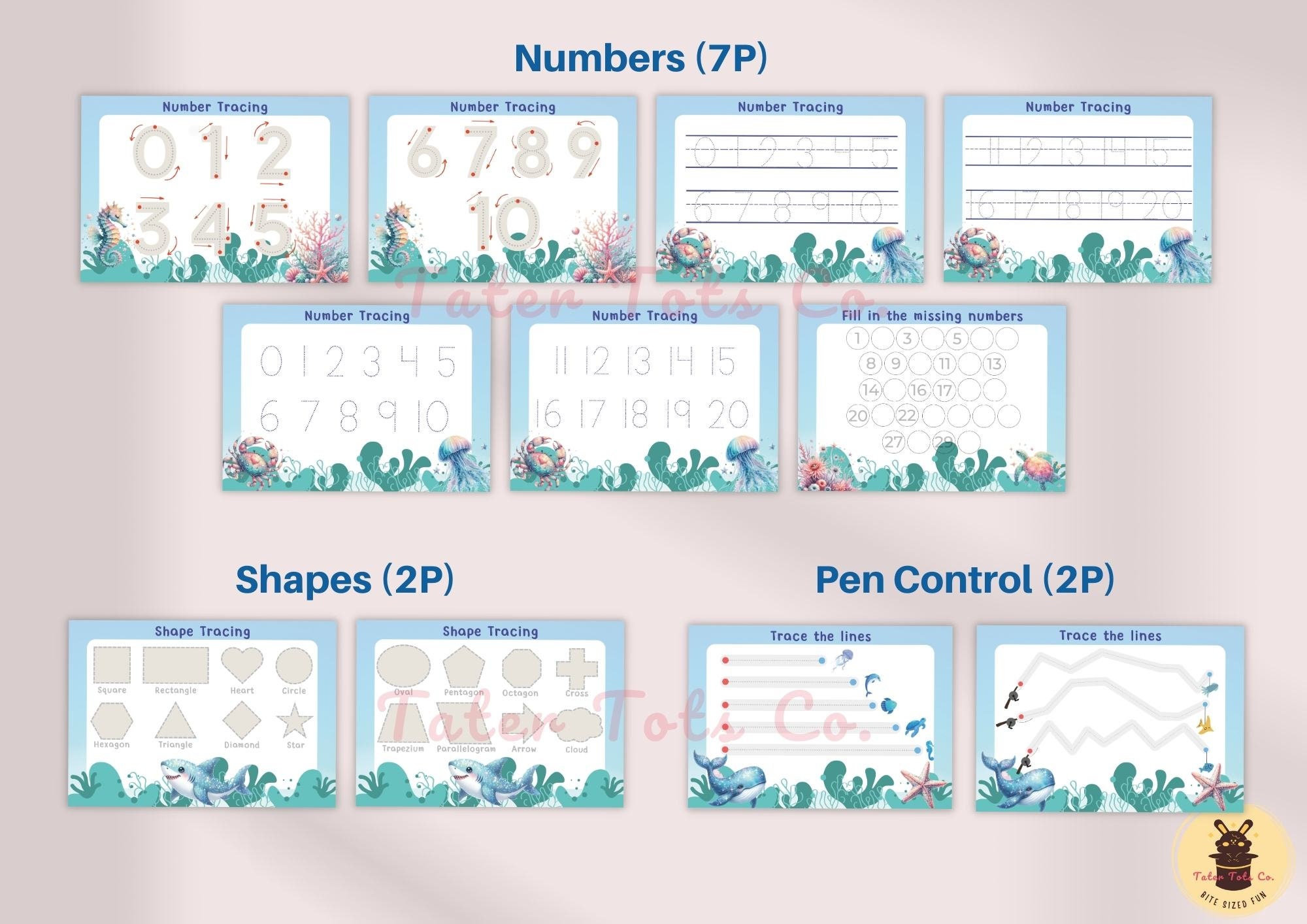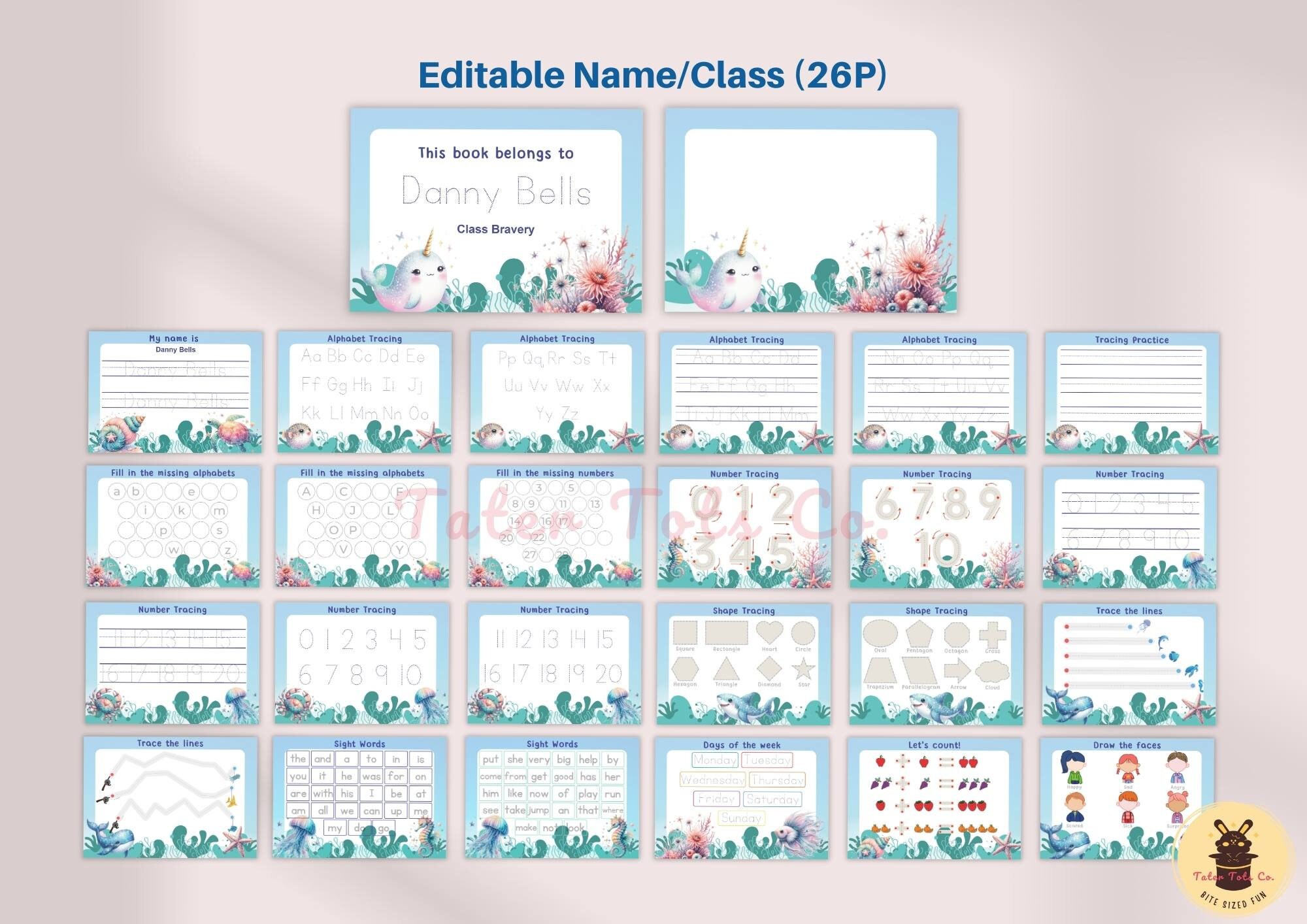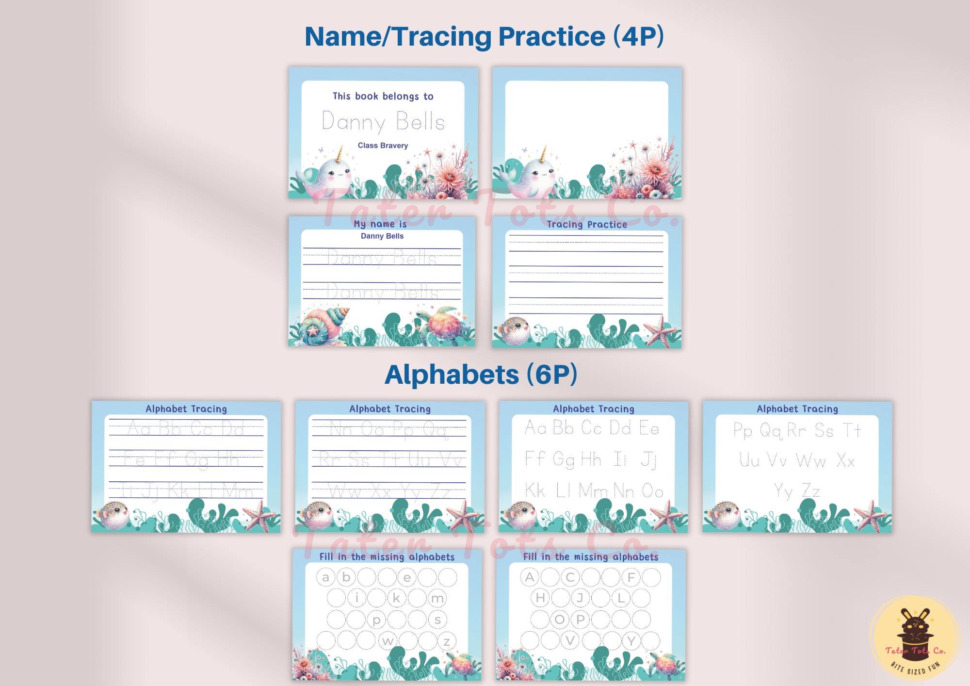 • Personalized Cute Rainbow Sea Animals Pre-Writing Tracing Bundle (26P)