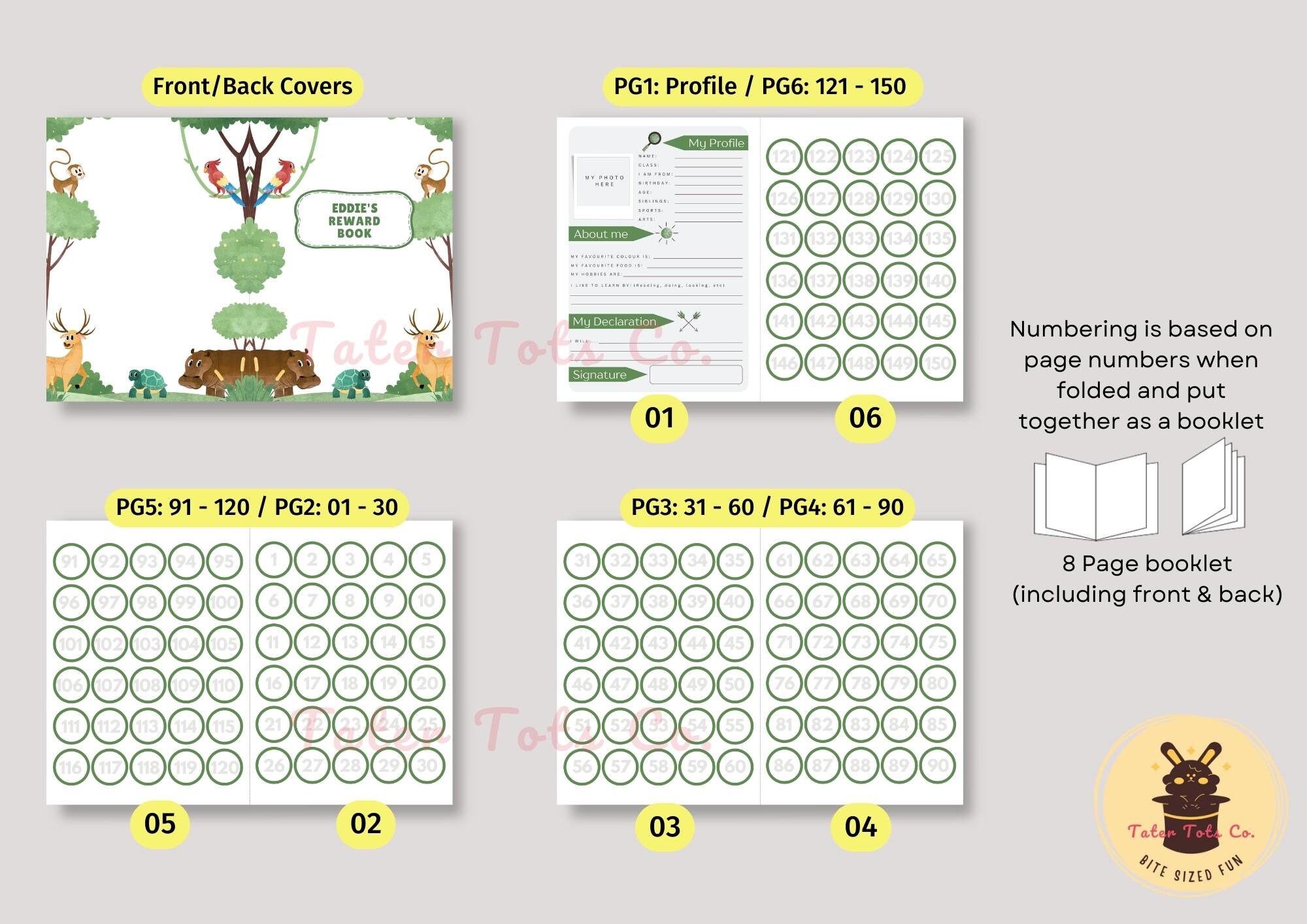 • Reward Booklet (Safari Animal Theme) A4 size bi-fold (numbered/unnumbered/circle/star design)