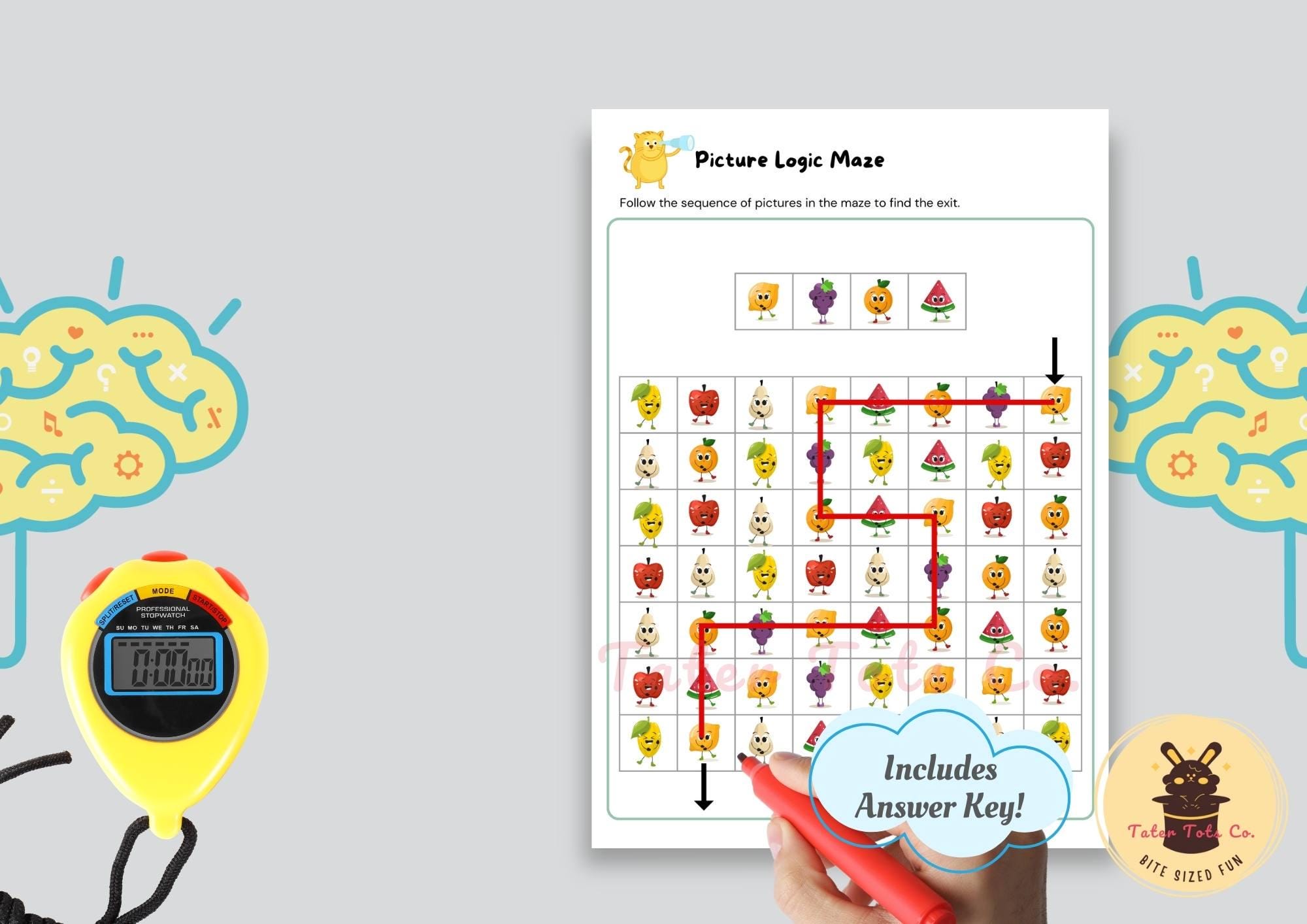• Picture Logic Maze Puzzle Beginner Level (Set of 8) + Answer Key
