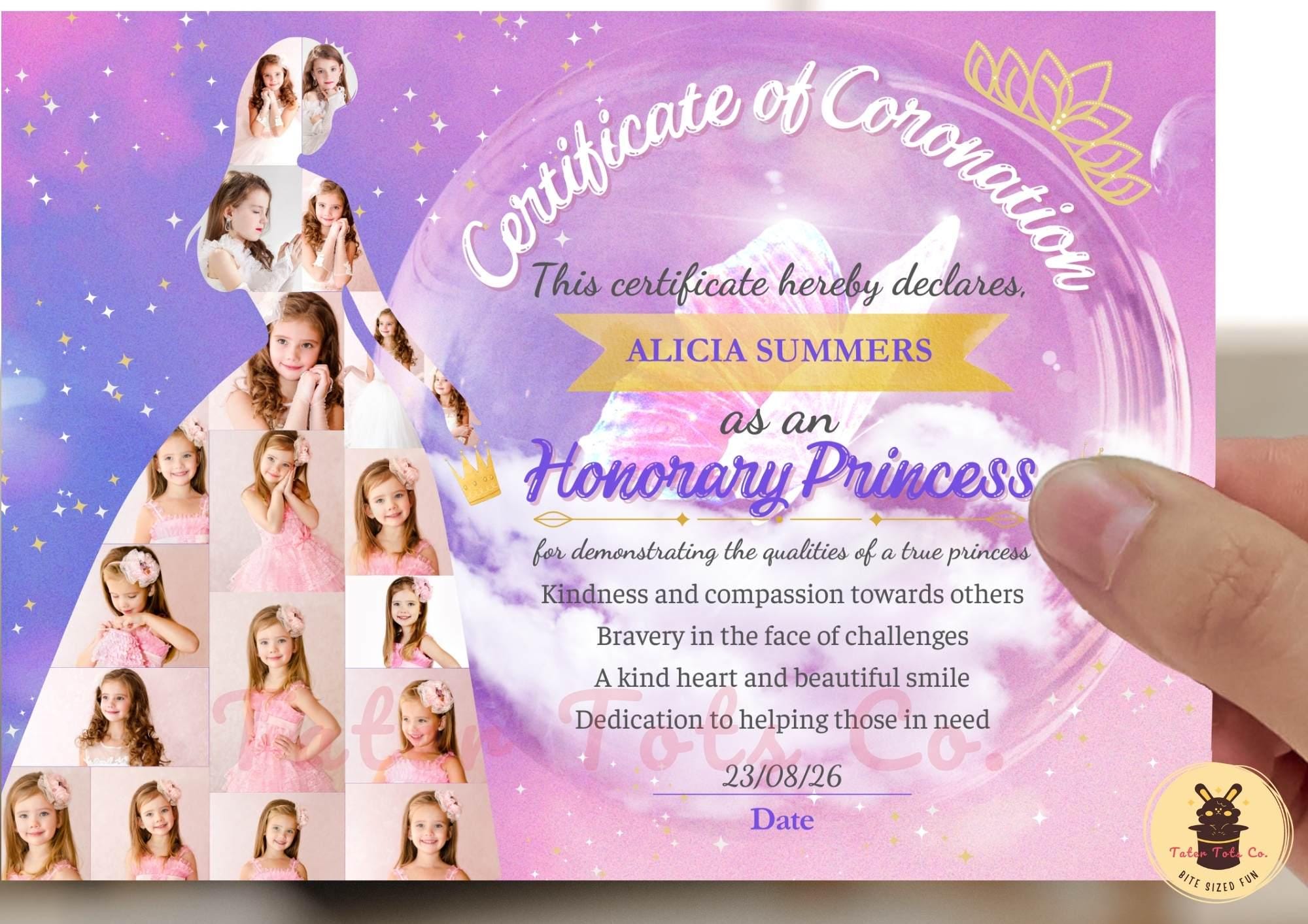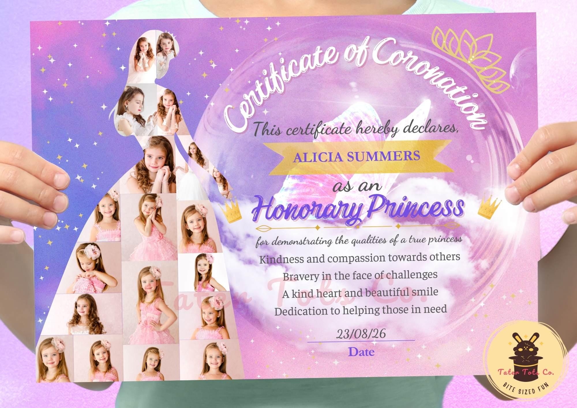 Princess Coronation Certificate: Photo Collage Canva Template (Digital Download)