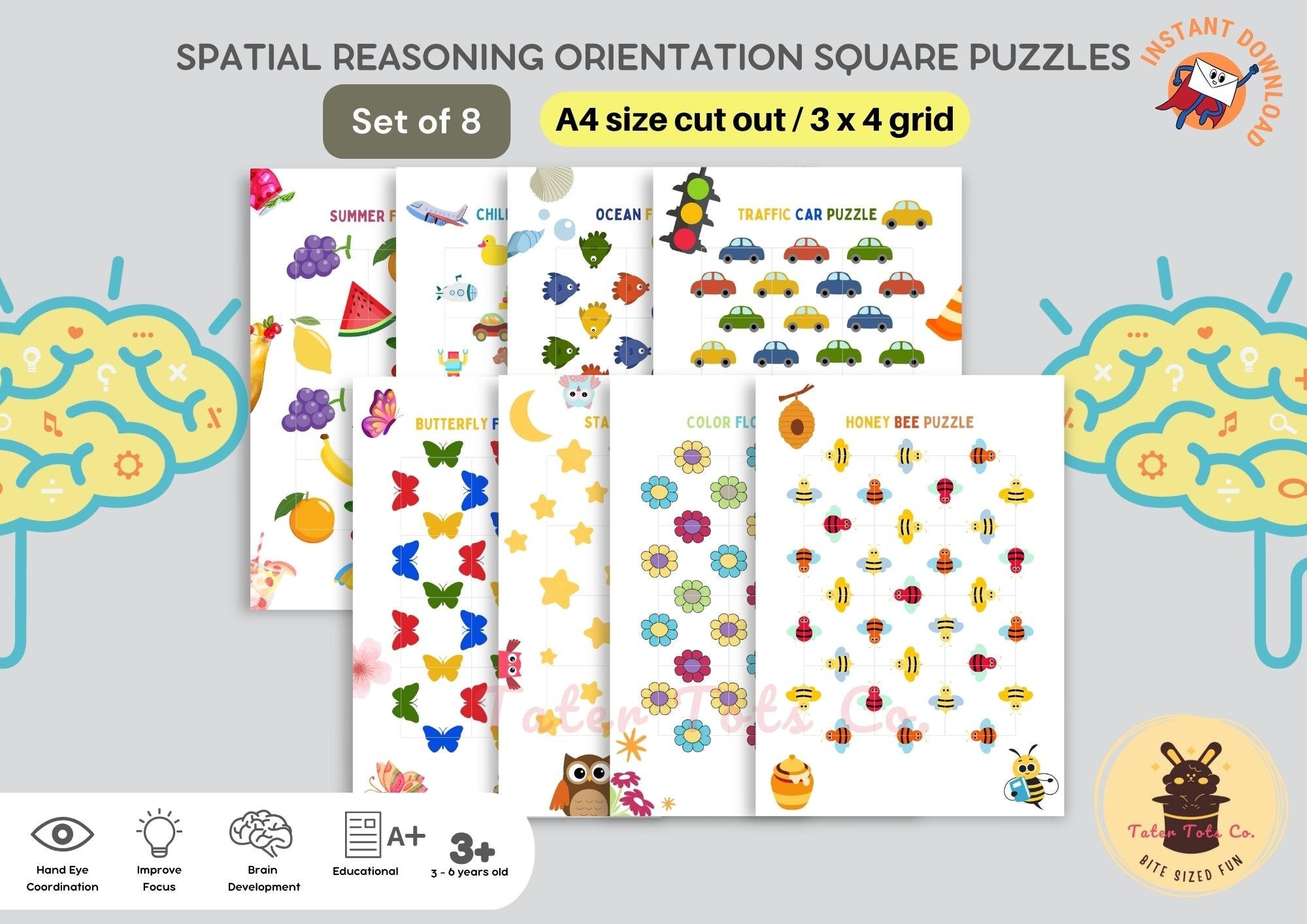 • Spatial Reasoning Orientation 3x4 Square Grid Puzzles (Set of 8)