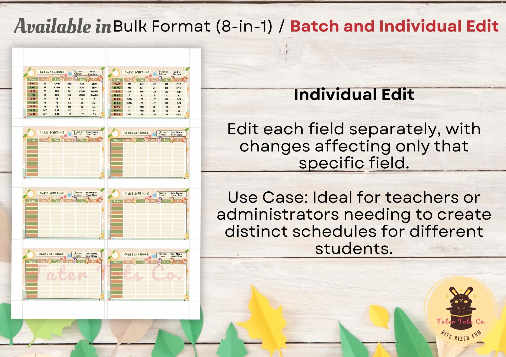 Easy Editing: Tailor student names, class times, and subject names to fit your needs. (Open the file in Adobe Acrobat Reader and edit directly)