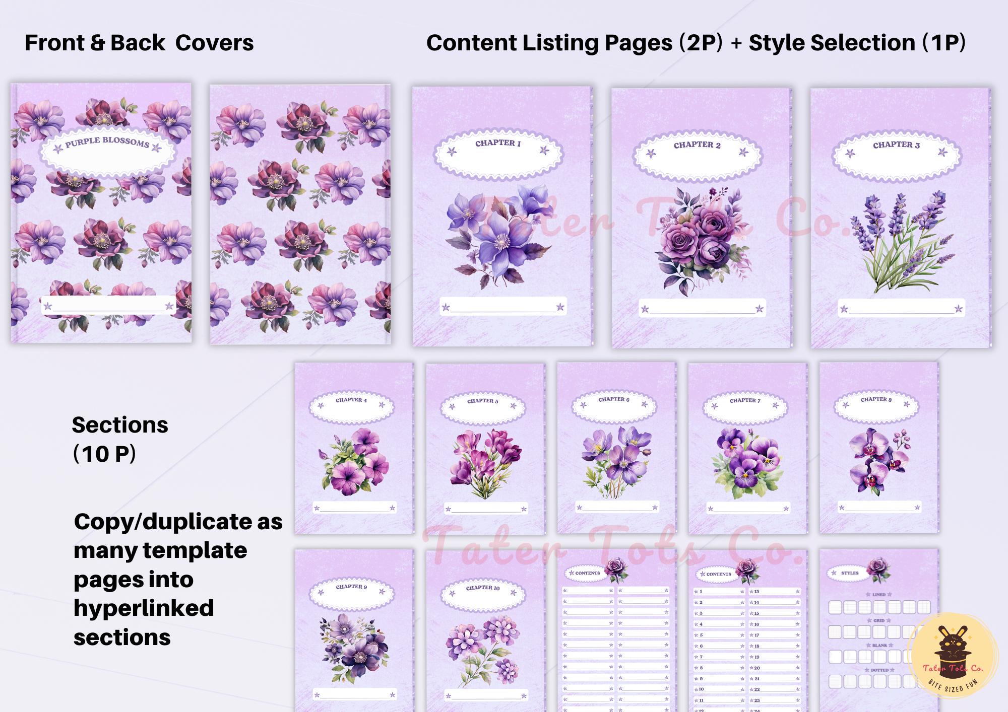 • Purple Blossoms Digital Notebook (Hyperlinked PDF)