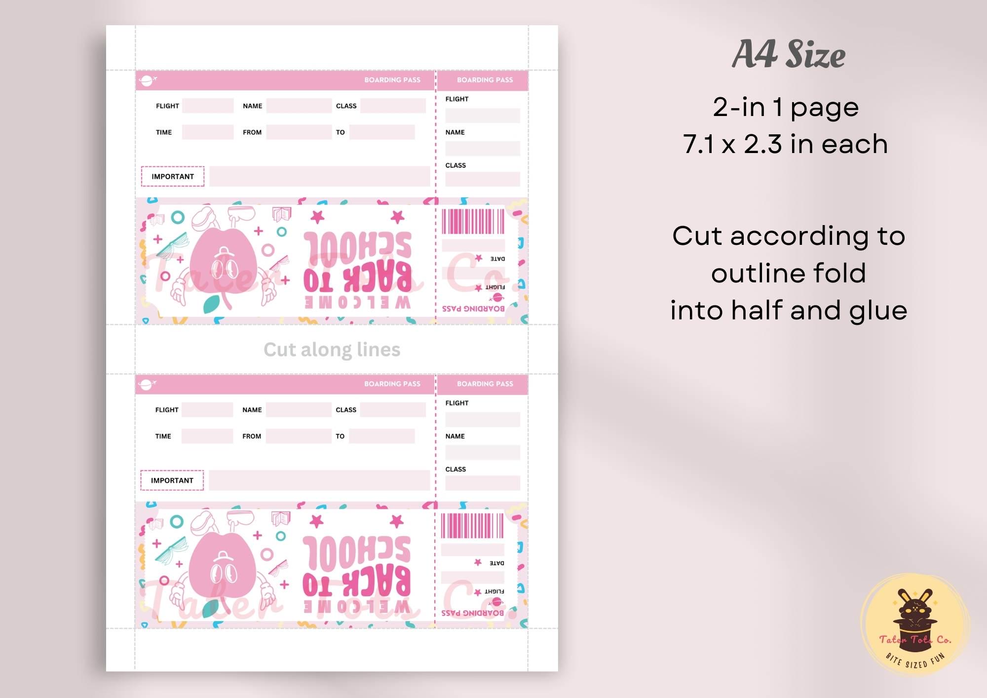 • Editable Back to School Pink Apple Boarding Pass A4 size 2-in-1 cut-out