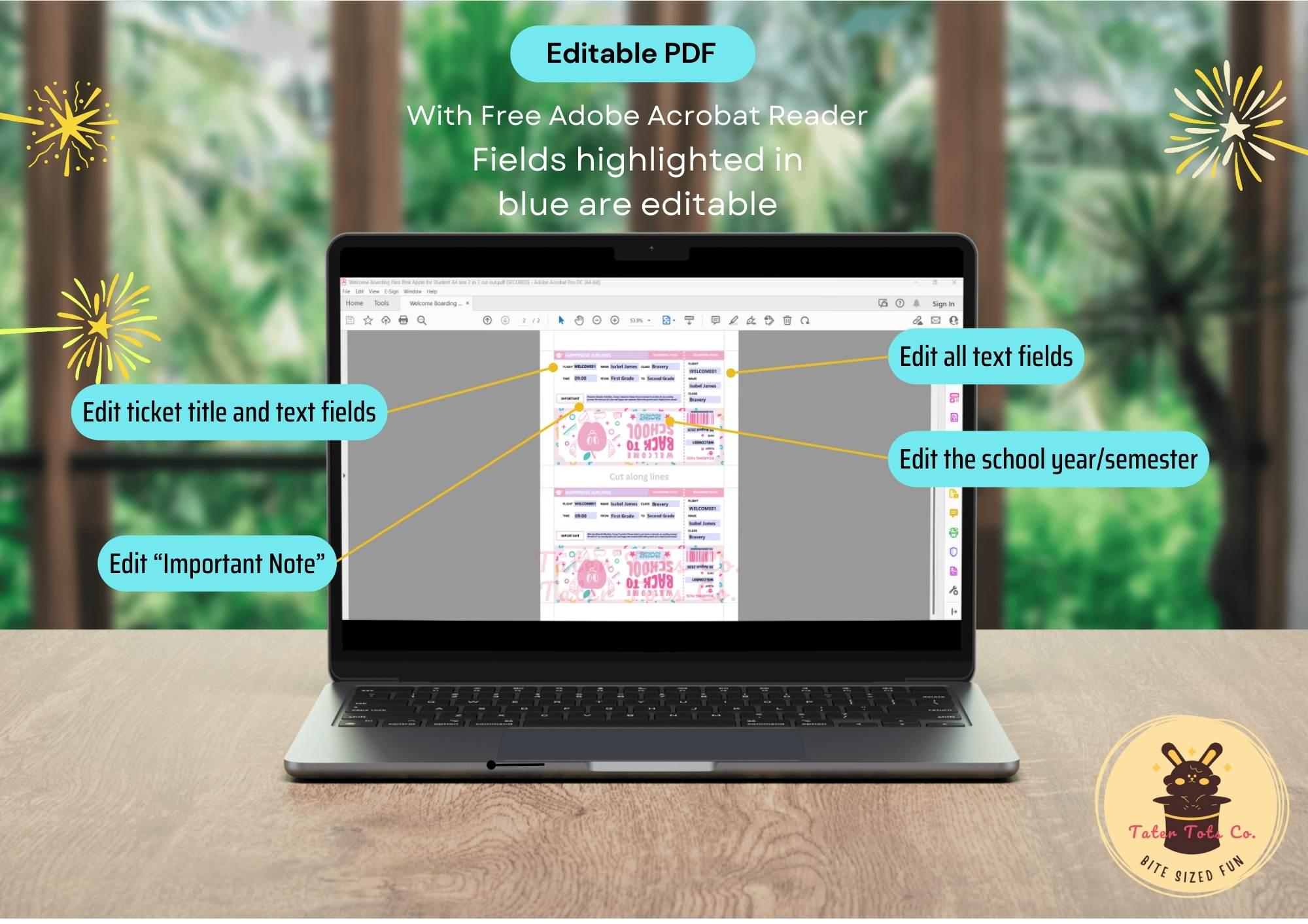 Instantly download, edit, and print as many copies as you need. Make the transition back to school exciting and memorable with this boarding pass that adds a playful touch to the start of a new school year!