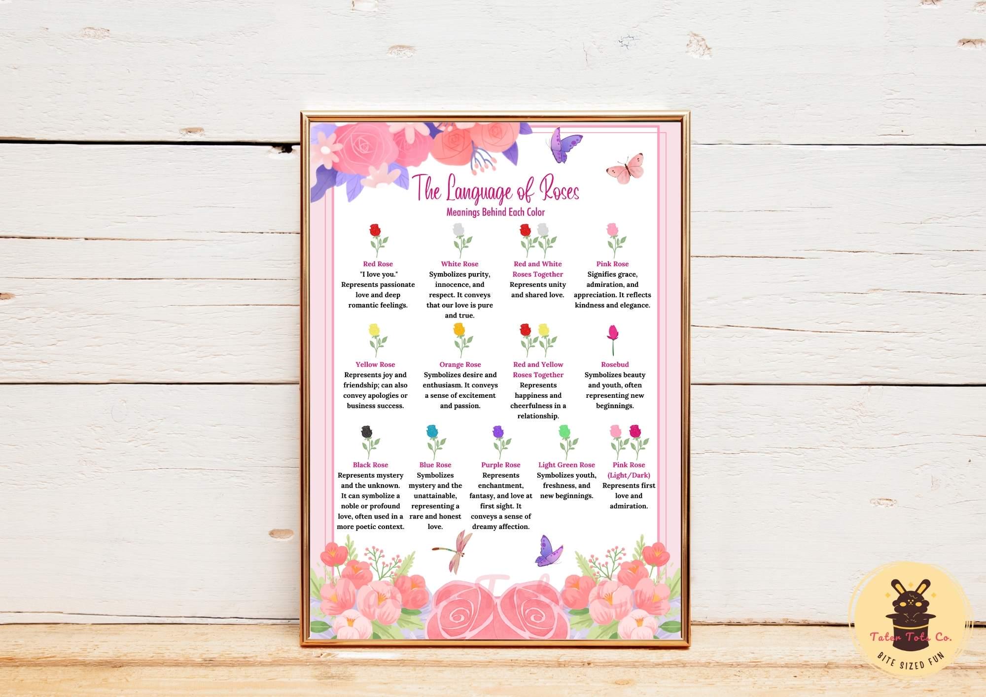 Rose Color Meaning Guide: Floral Symbolism Art (Digital Download)