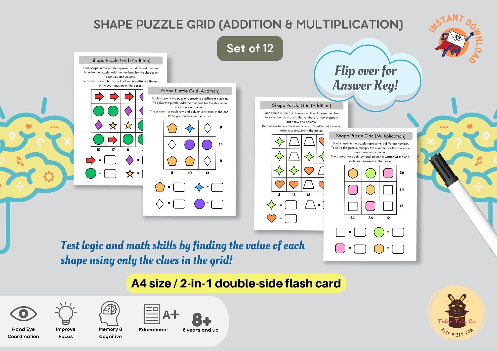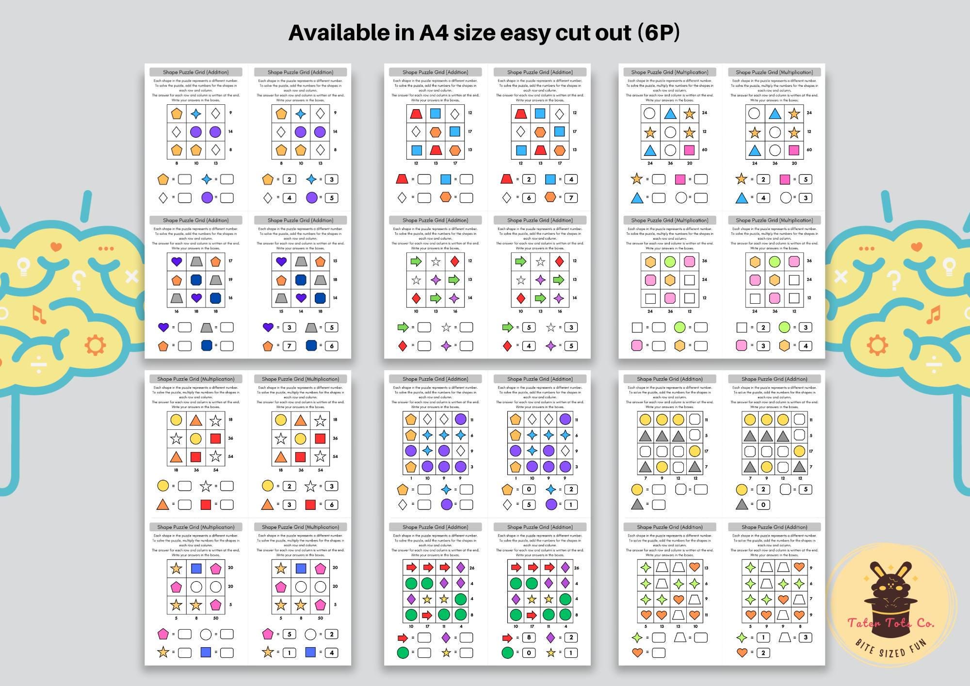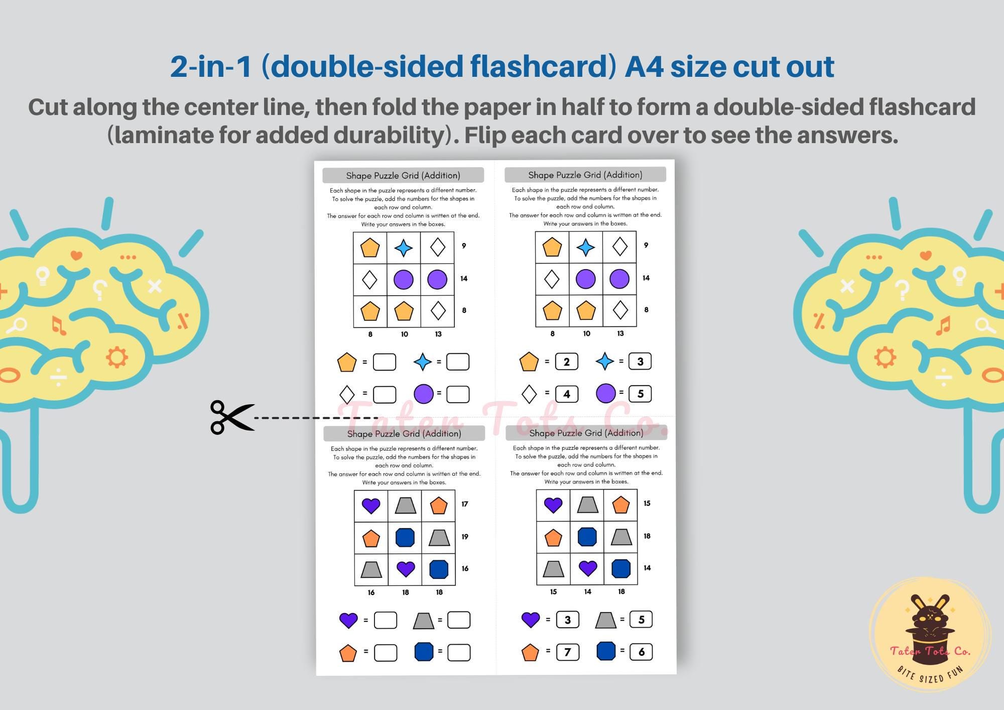 • Printable Shape Puzzle Grid Flashcard Bundle A4 cut out (6P 2-in-1 page double-sided flashcards, 24 puzzles)