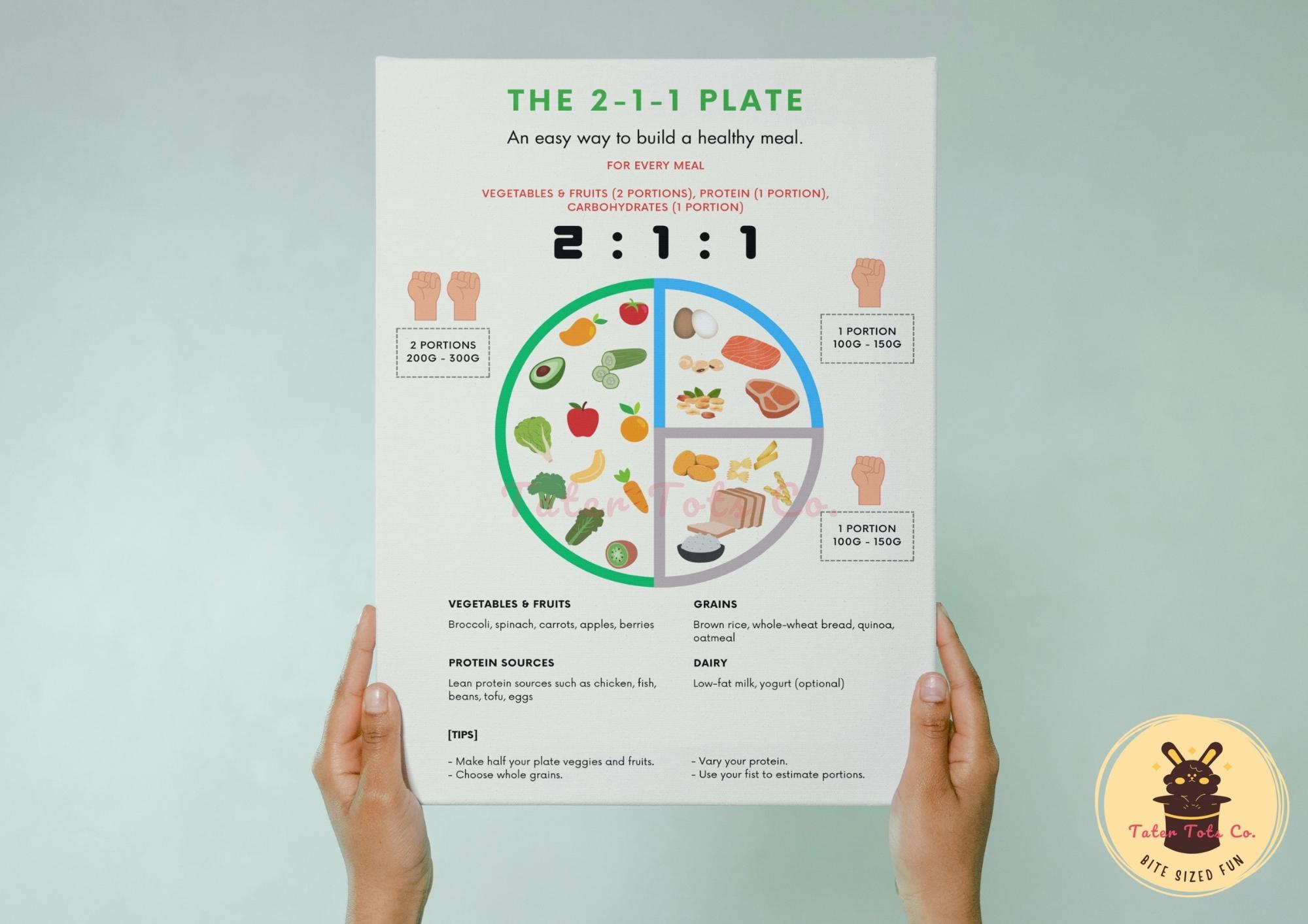 Simple Healthy Eating Guide 2-1-1: My Plate Rule Meal Planning Infographic Guide | Printable PDF - Instant Download