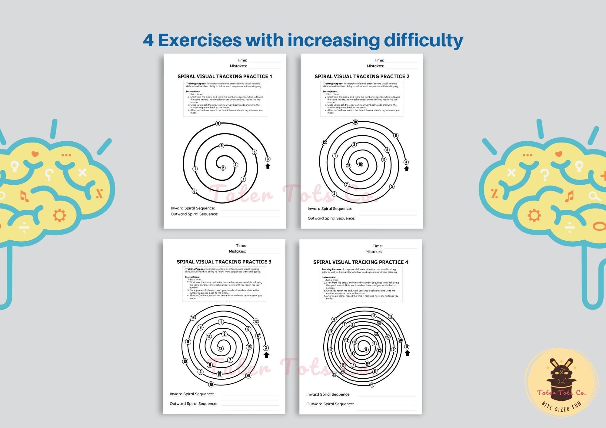 • Spiral Visual Tracking Practices Set of 4 Activity Sheets (A4 size)