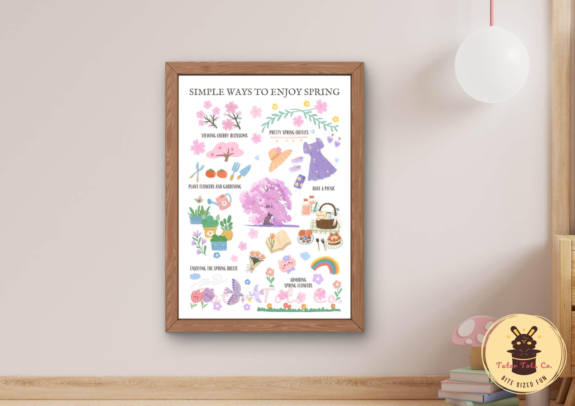 Discover delightful ways to embrace the beauty of the spring season with our charming wall art printable, "Simple Ways to Enjoy Spring."