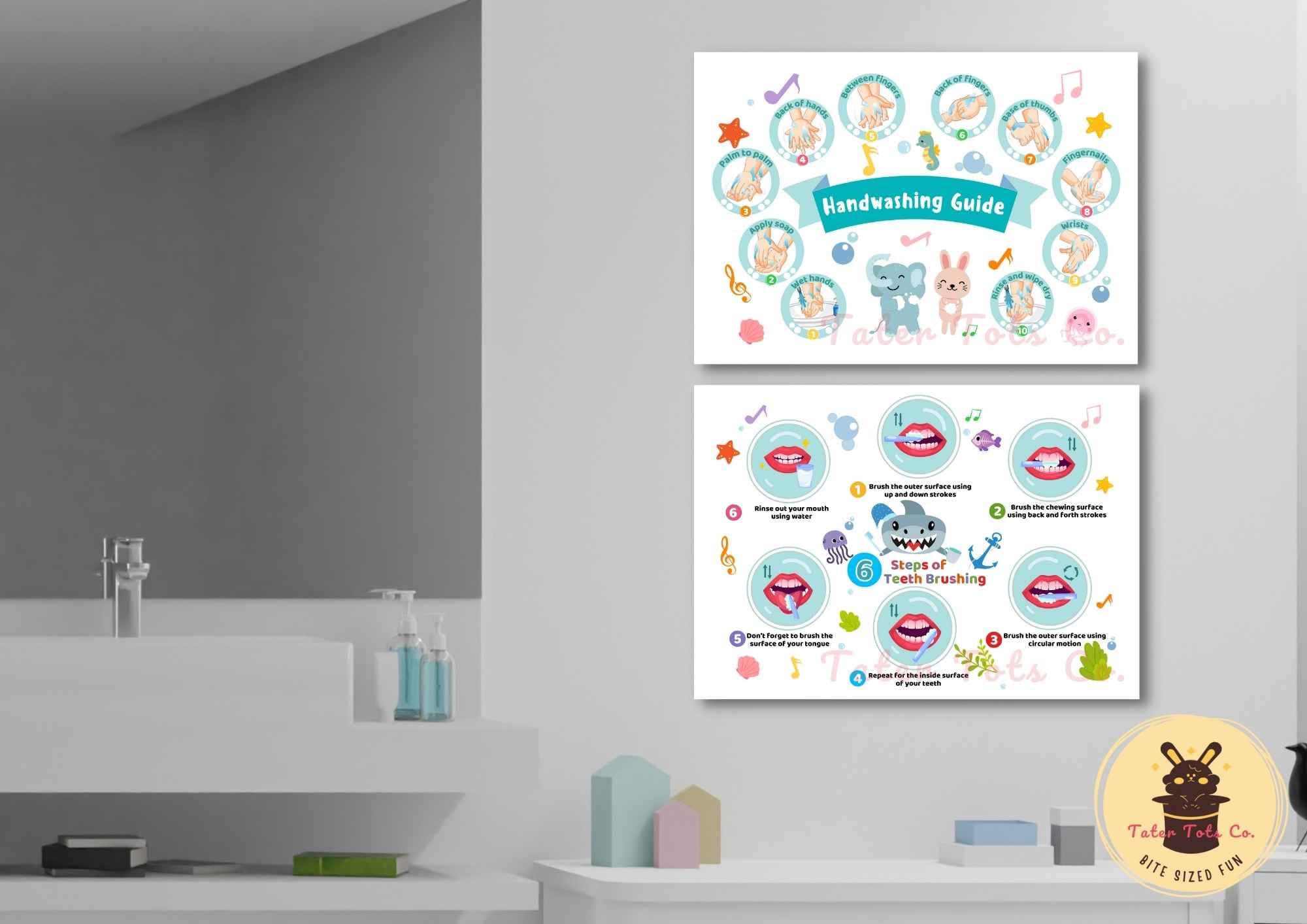 Hand washing Poster: https://www.etsy.com/uk/listing/1253332518/hand-washing-poster-kids-bathroom