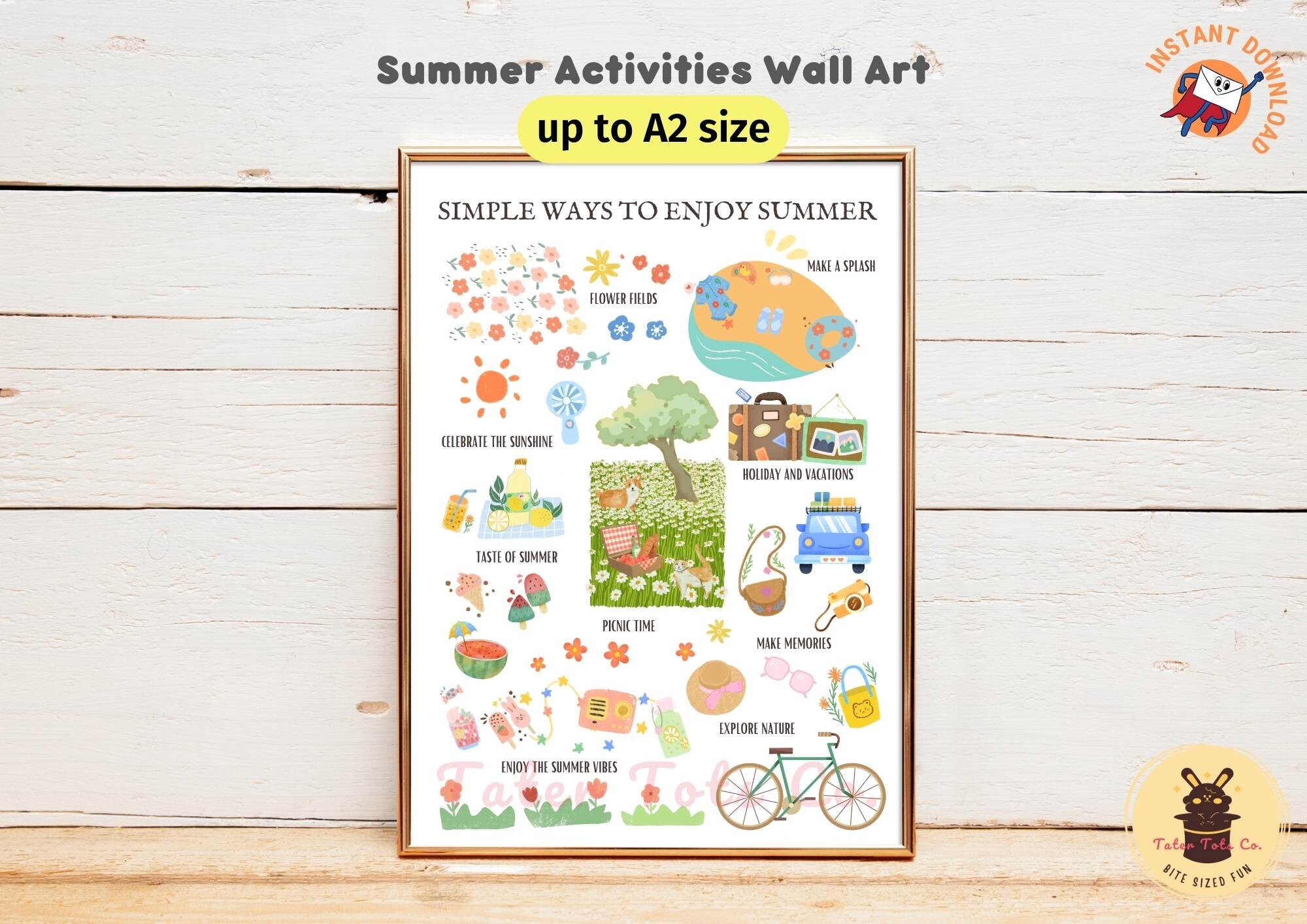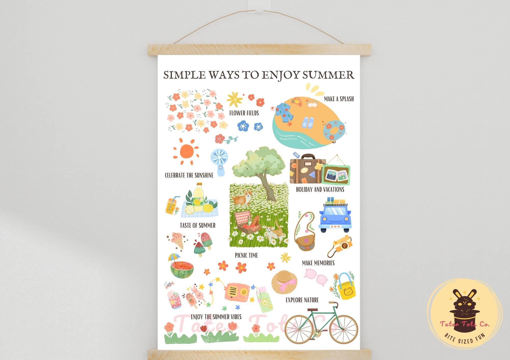 Suitable for living rooms, kitchens, kids' rooms, or offices, this printable wall art makes a wonderful gift for family and friends who adore the summer season. Decorate your space with this lovely reminder of summer’s simple pleasures.