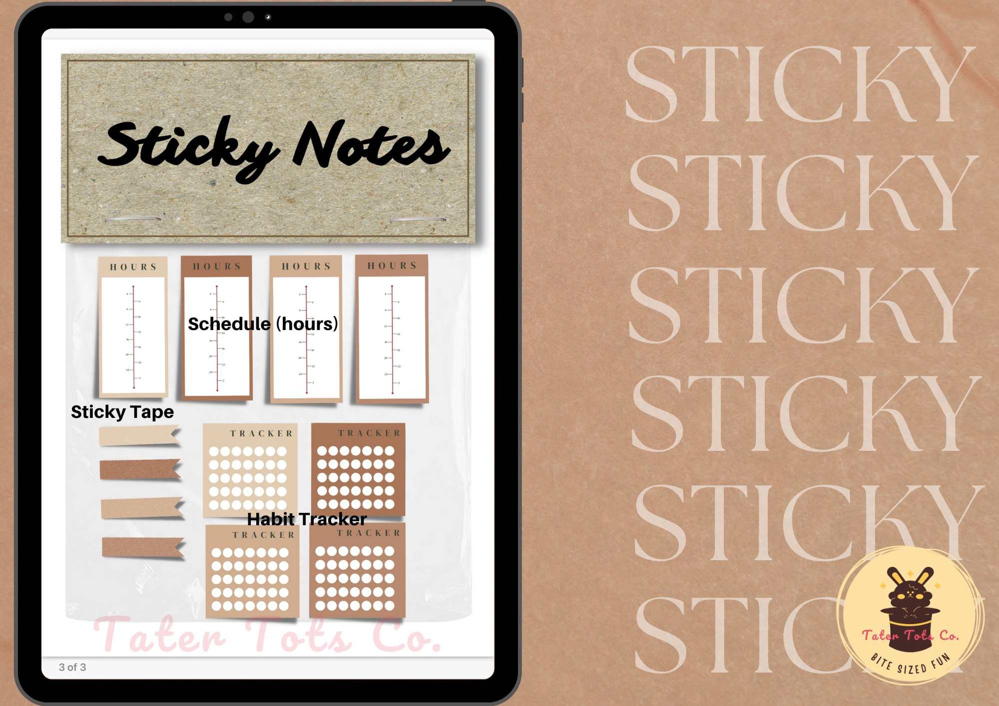 Tan Brown Digital Sticky Notes: Paperless Planning (Goodnotes file)