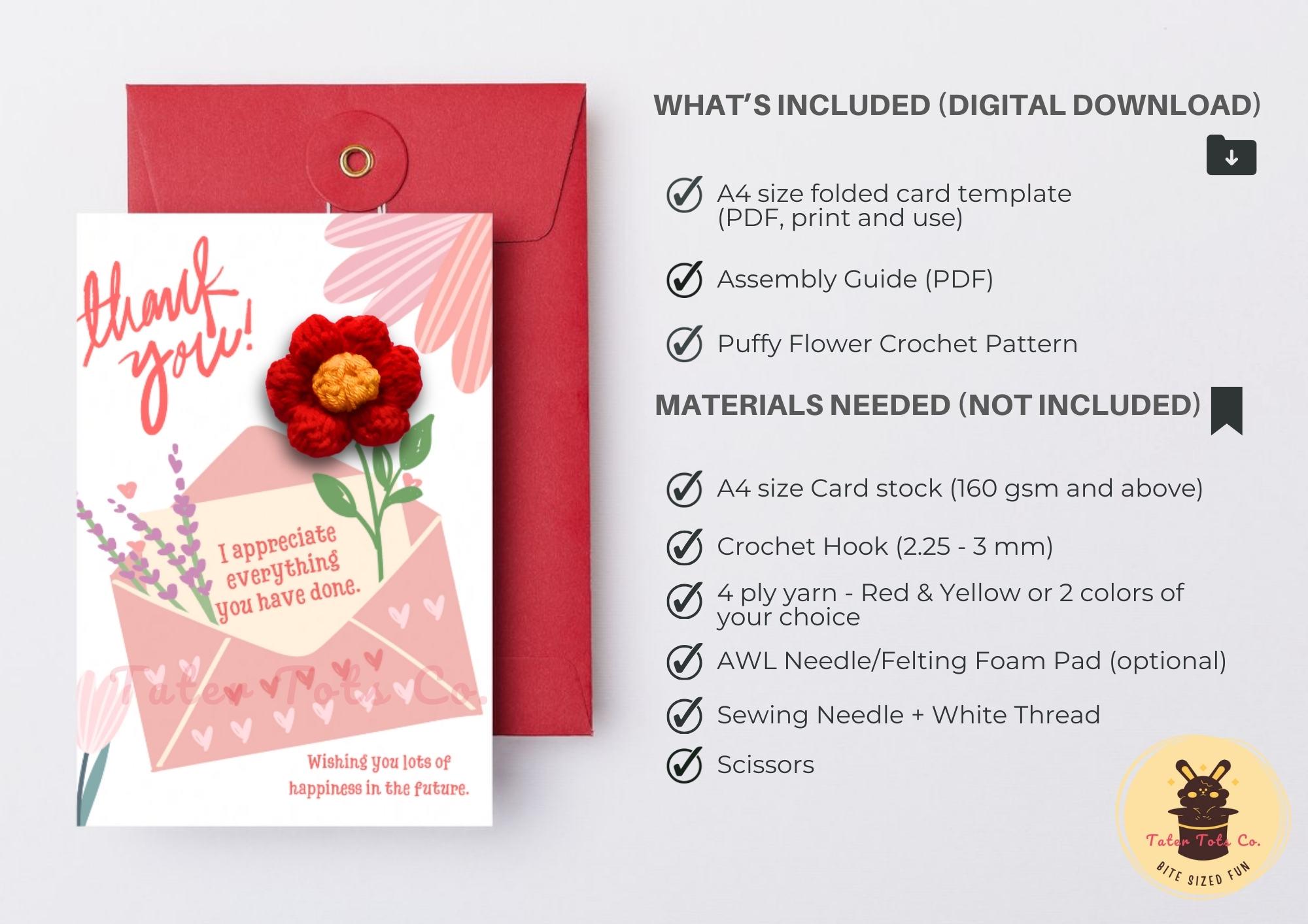 Thank you Crochet Puffy Flower Appreciation Backing Card Template - DIY Craft with Pattern Instant Download PDF