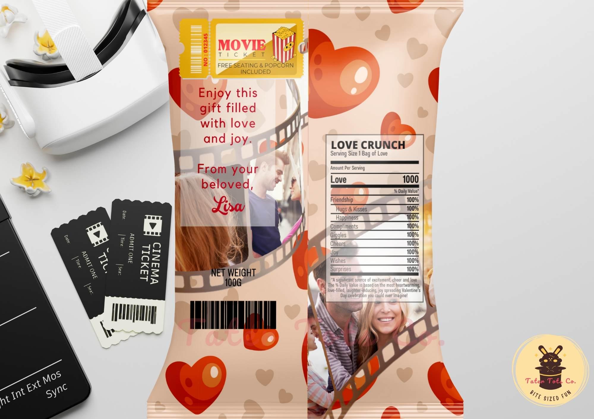 Valentine Movie Night Photo Collage Frame Film Roll Heart Background Chip Bag Canva Template | Fully Editable Gift Pack Label Instant Access