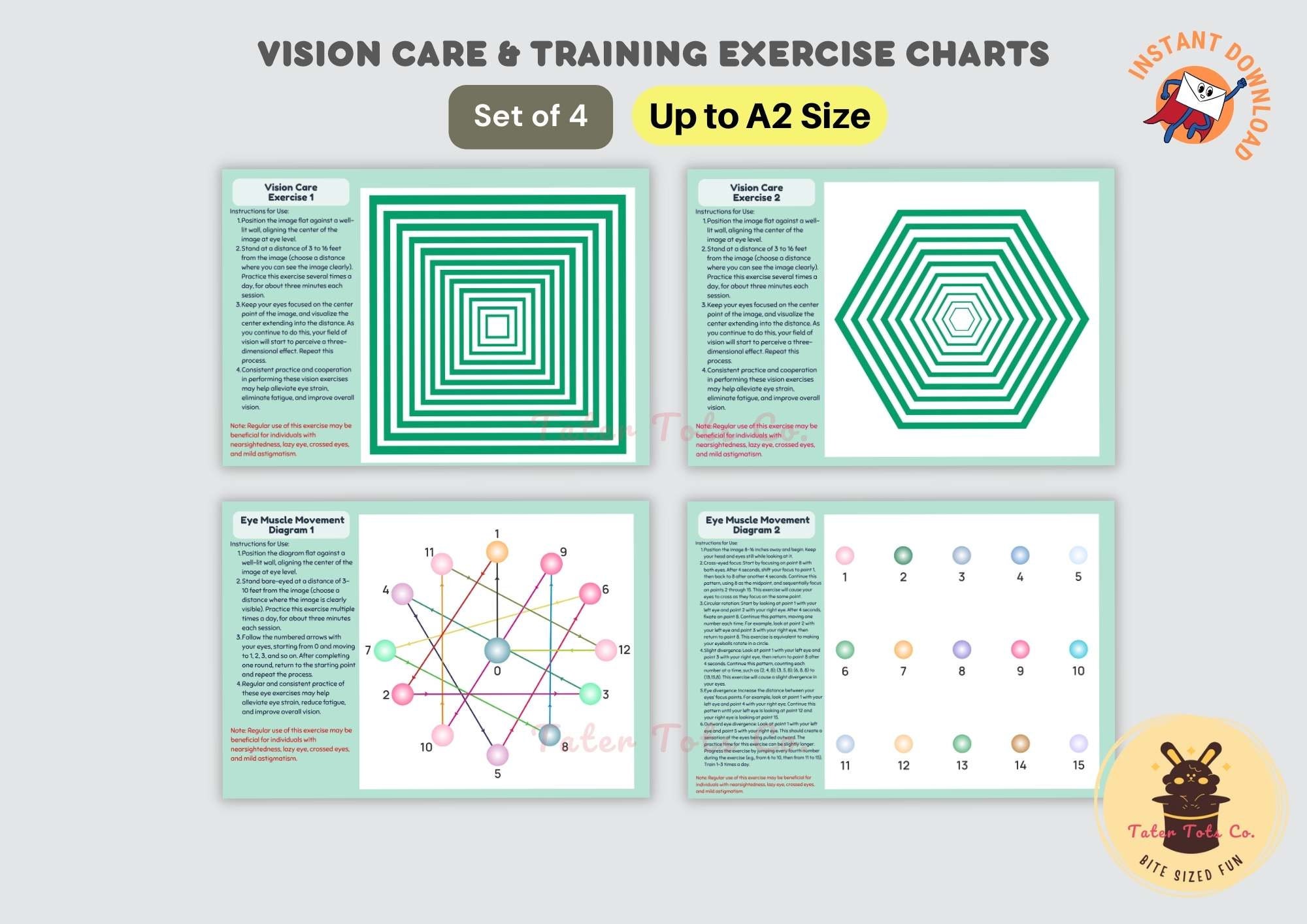 • Vision Care and Training Eye Exercise Posters Bundle of 4 (up to A2 size)