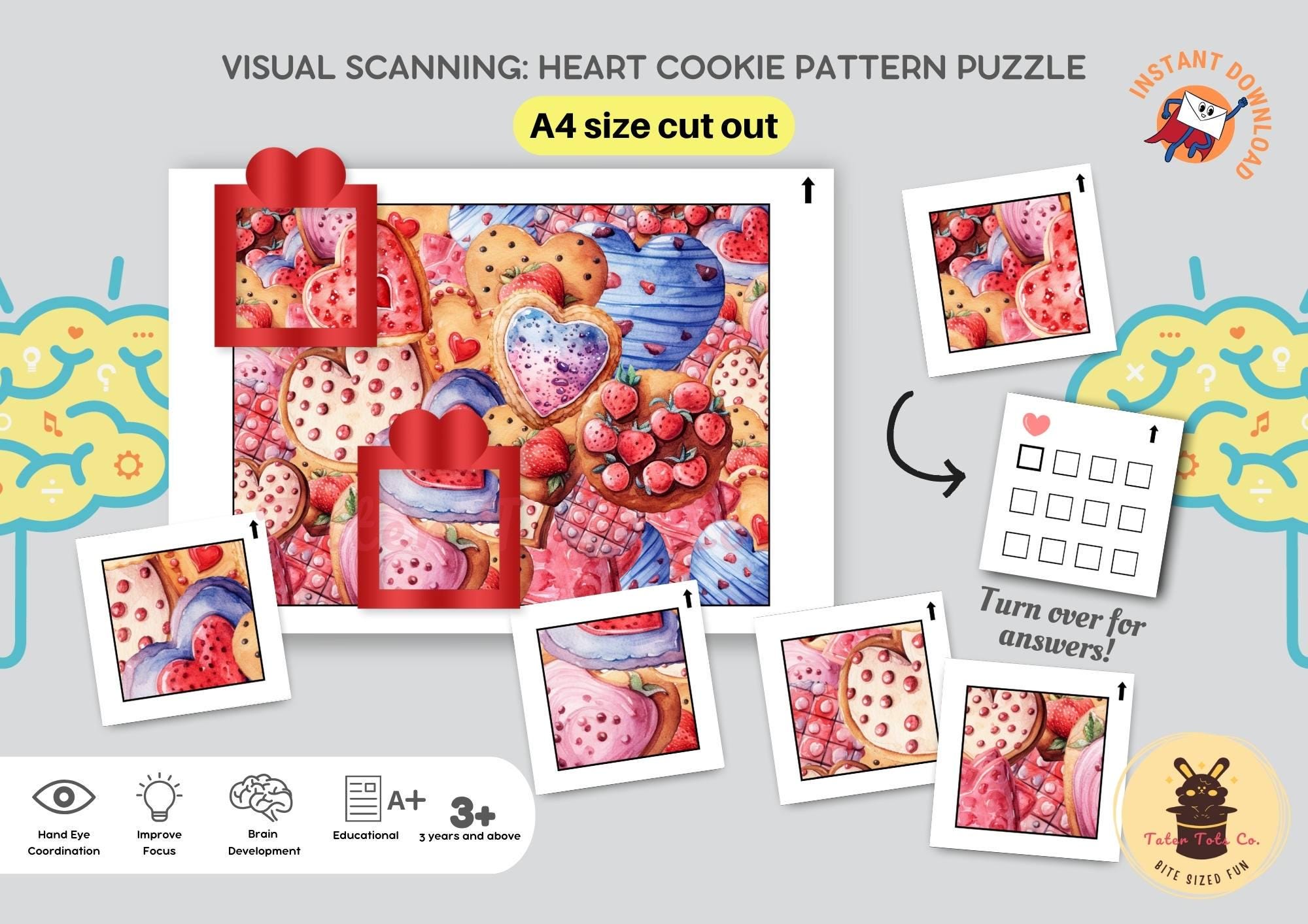 Visual Scanning: Heart Cookie Pattern Puzzle Search and Match it Preschool Game Instant Download