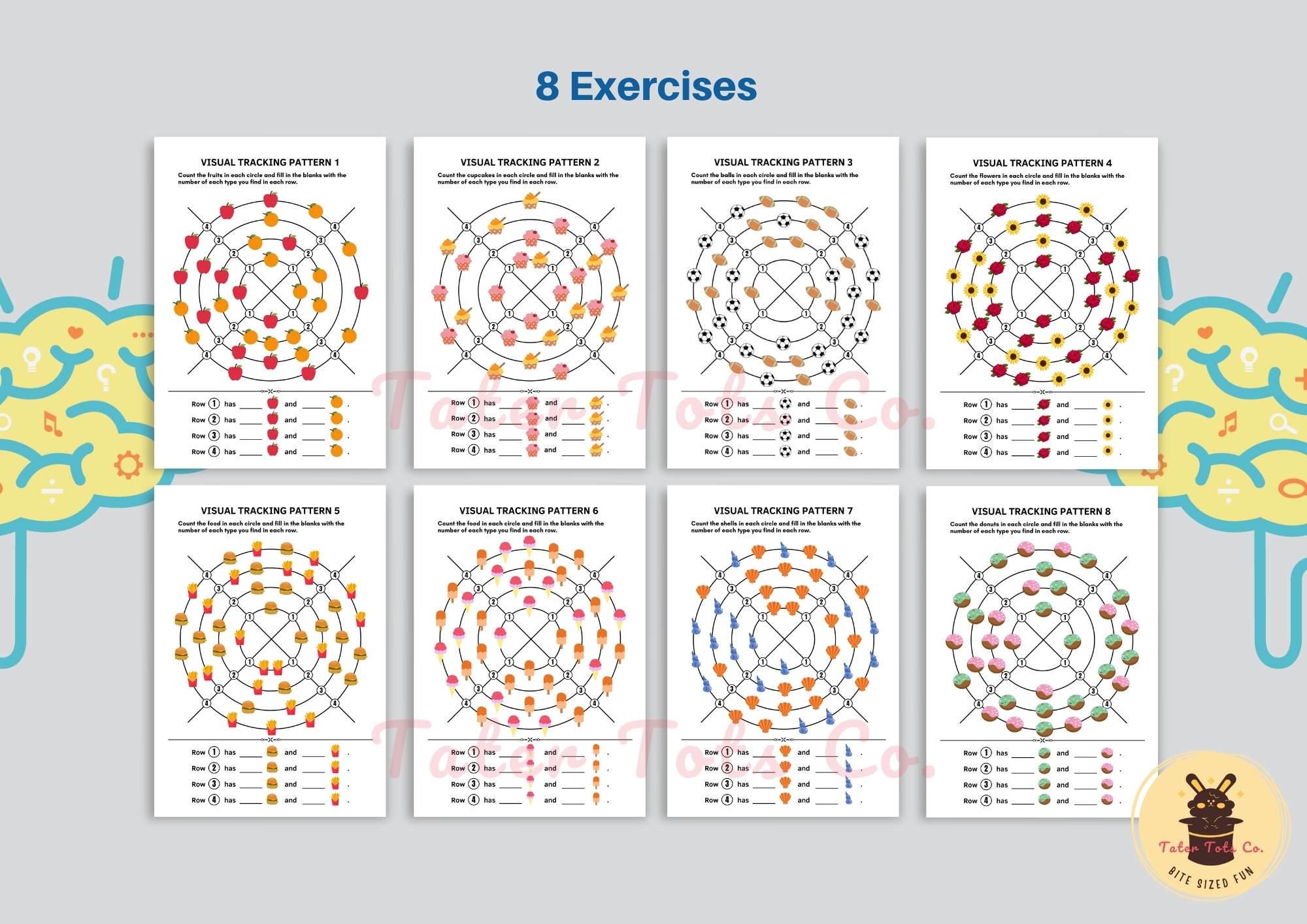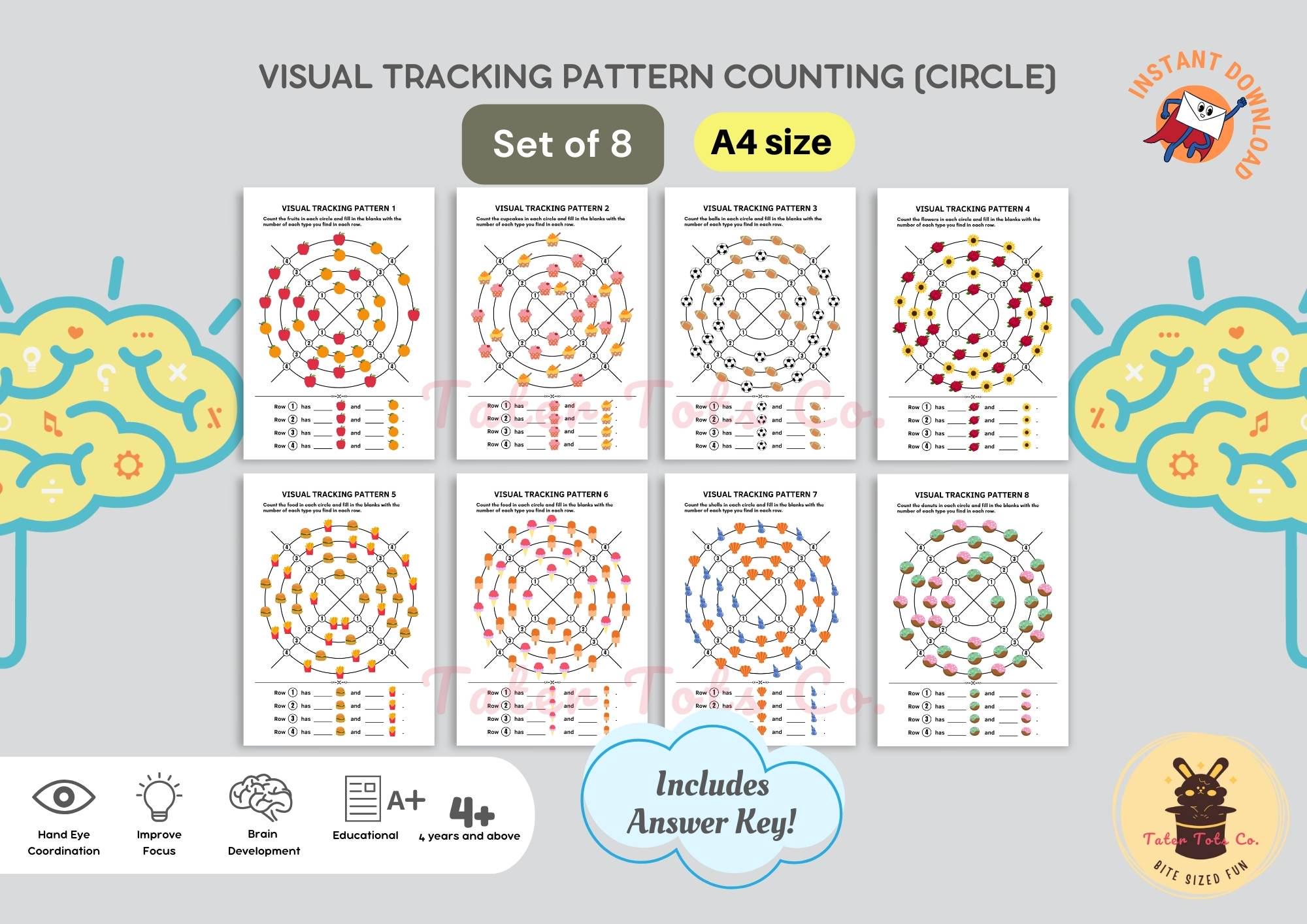• Visual Tracking Pattern Counting Skills Set of 8 Activity Sheets (A4 size)
