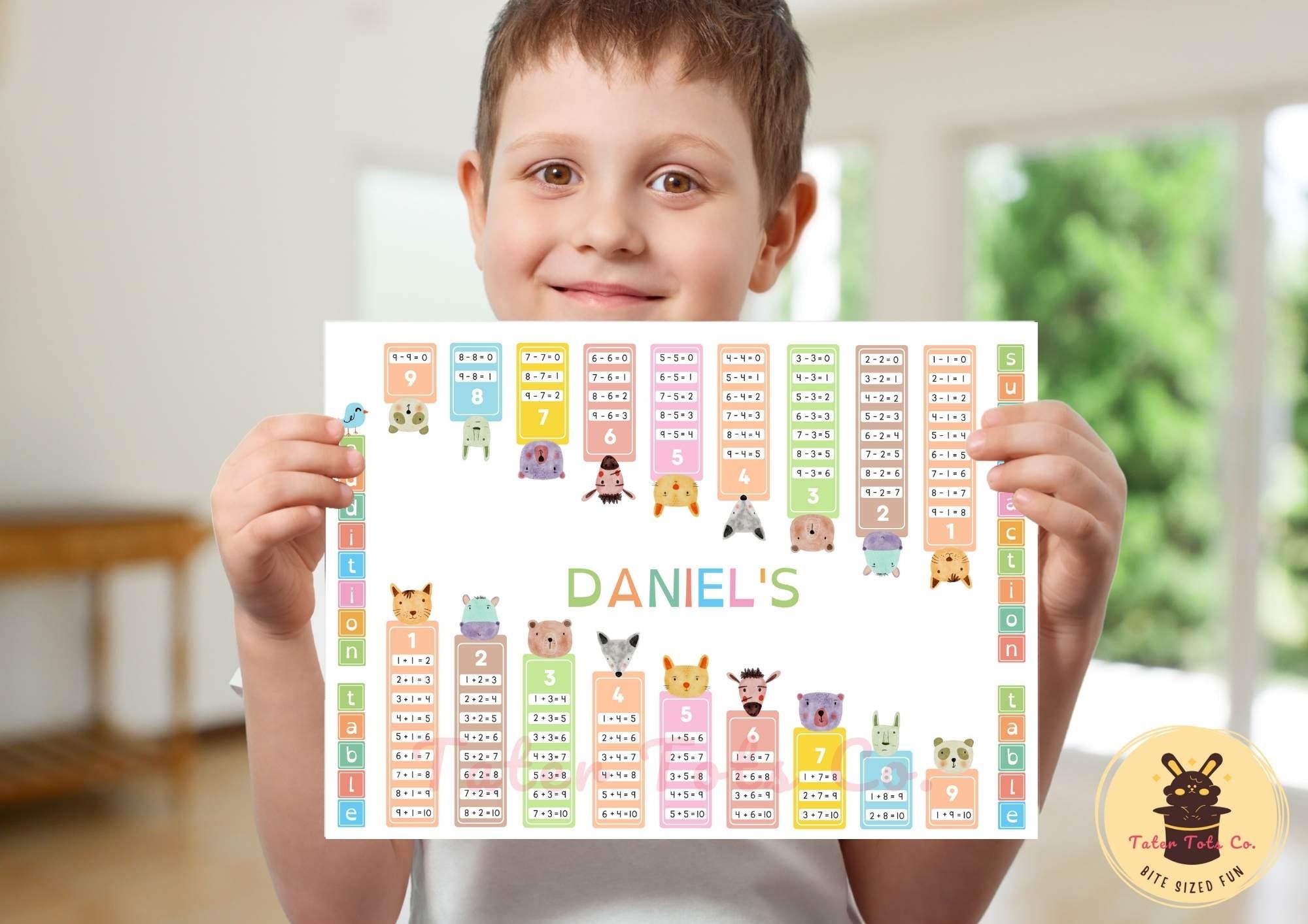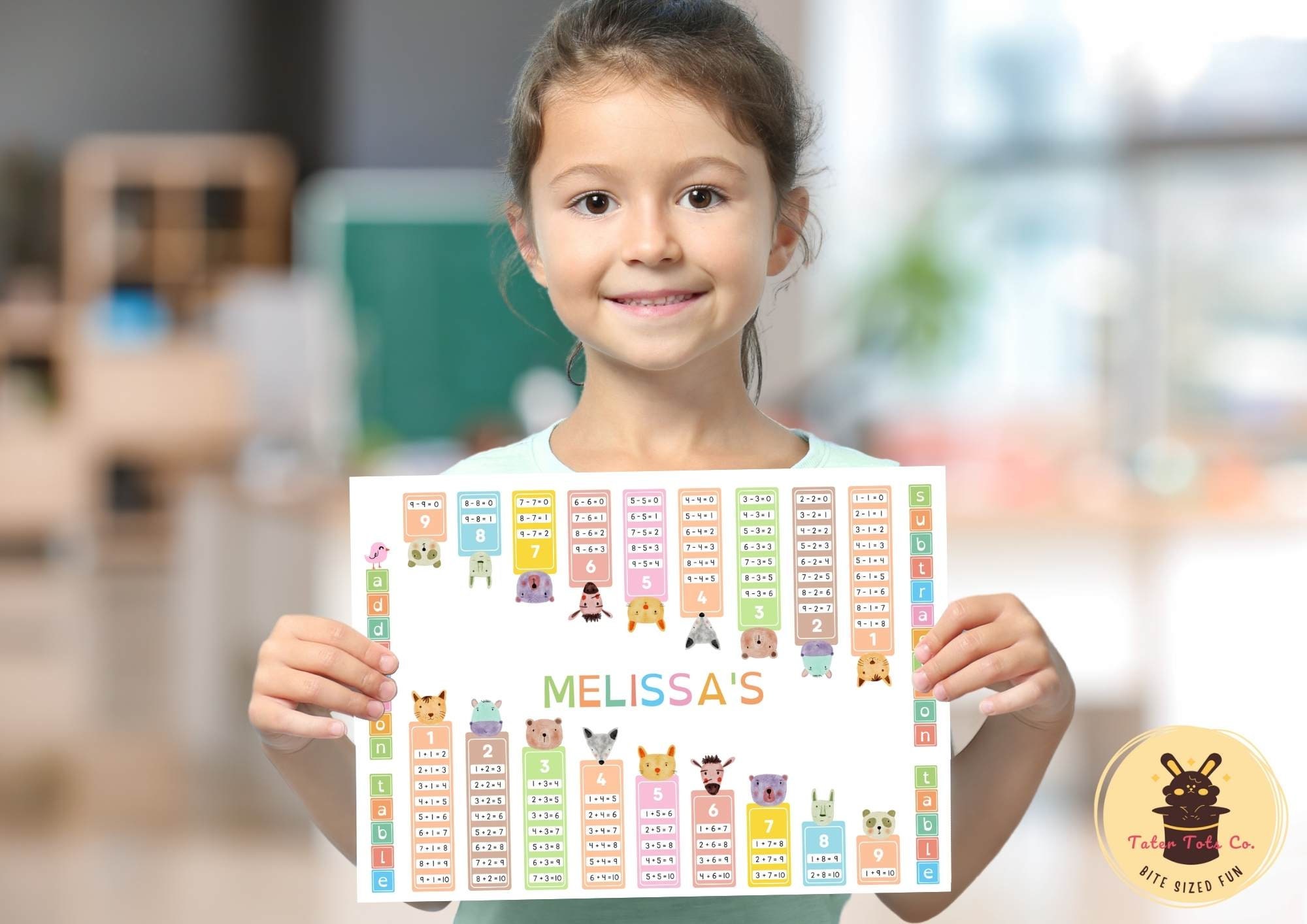 Personalized Multiplication table (Blue/Pink) - https://www.etsy.com/uk/listing/1304801620/personal-cute-animals-multiplication
