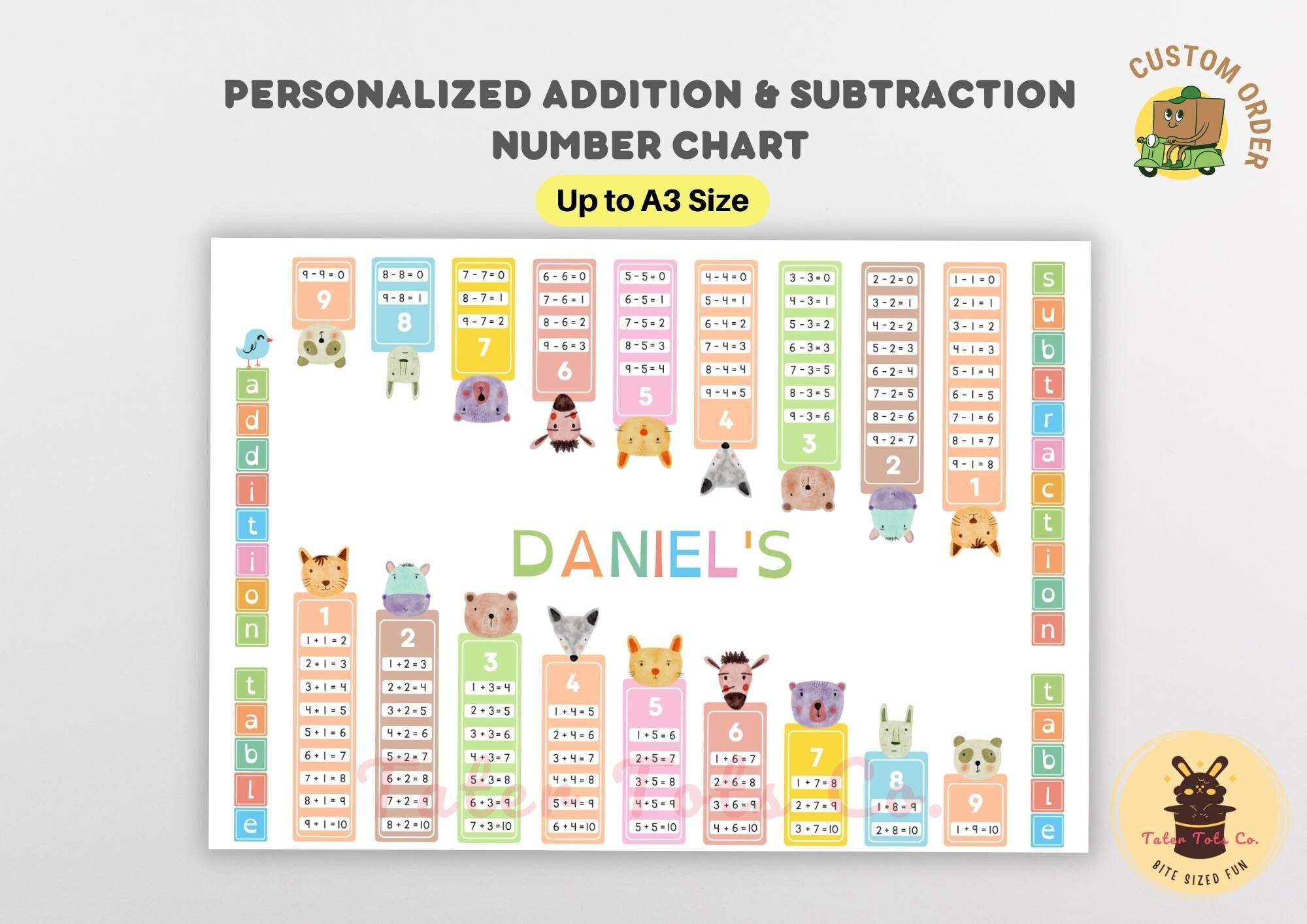 Personalized Addition Subtraction Number Tables - https://www.etsy.com/uk/listing/1325621143/personalised-addition-subtraction-number