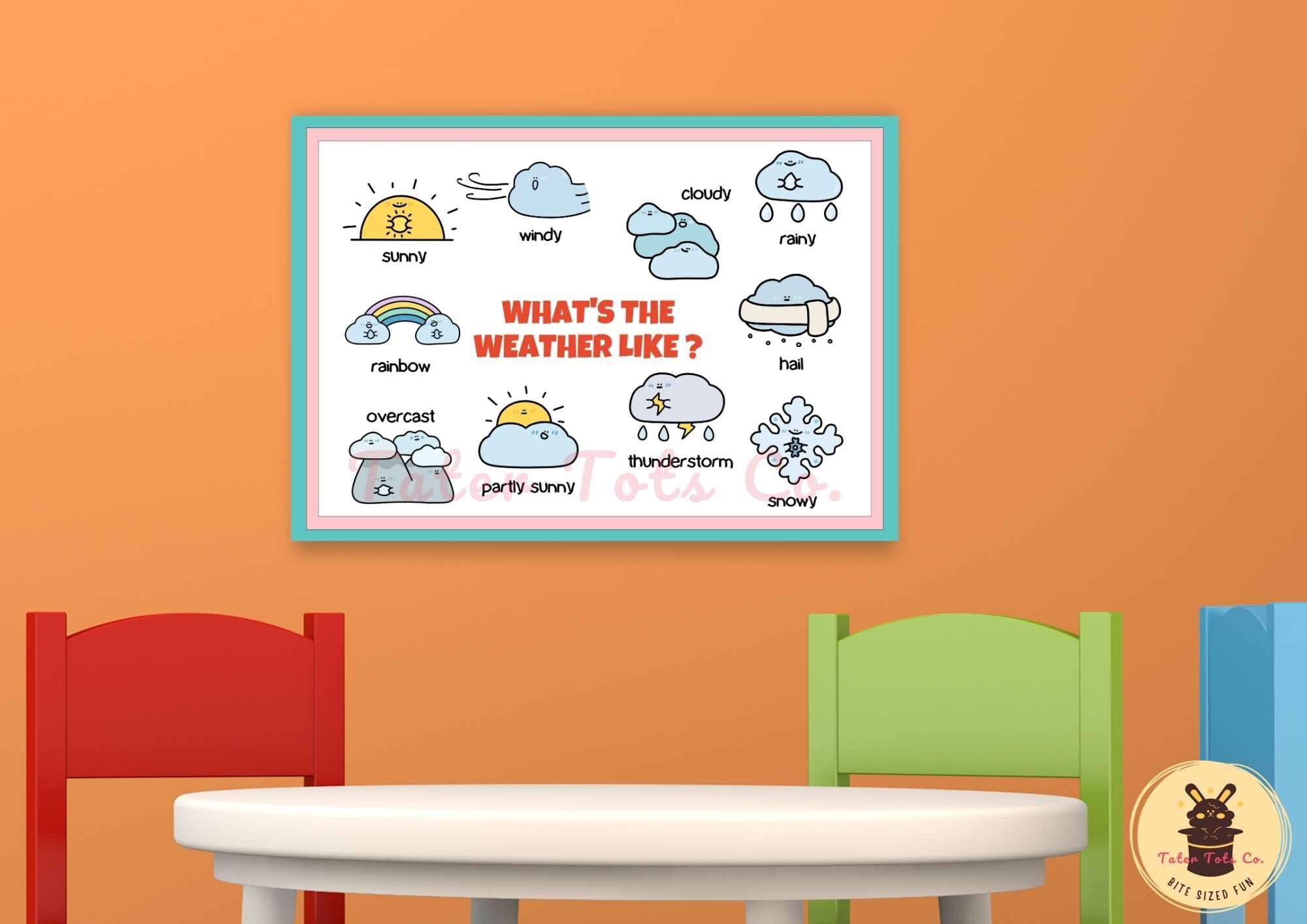 Brighten your classroom, playroom, or therapy space with this adorable hand-drawn Weather Icons and Emotions Poster! This resource features cute, engaging illustrations to help children identify weather patterns and conditions. Suitable for teachers, parents, homeschoolers, and counselors, this educational resource is both fun and functional. Instantly download and print your copy today!