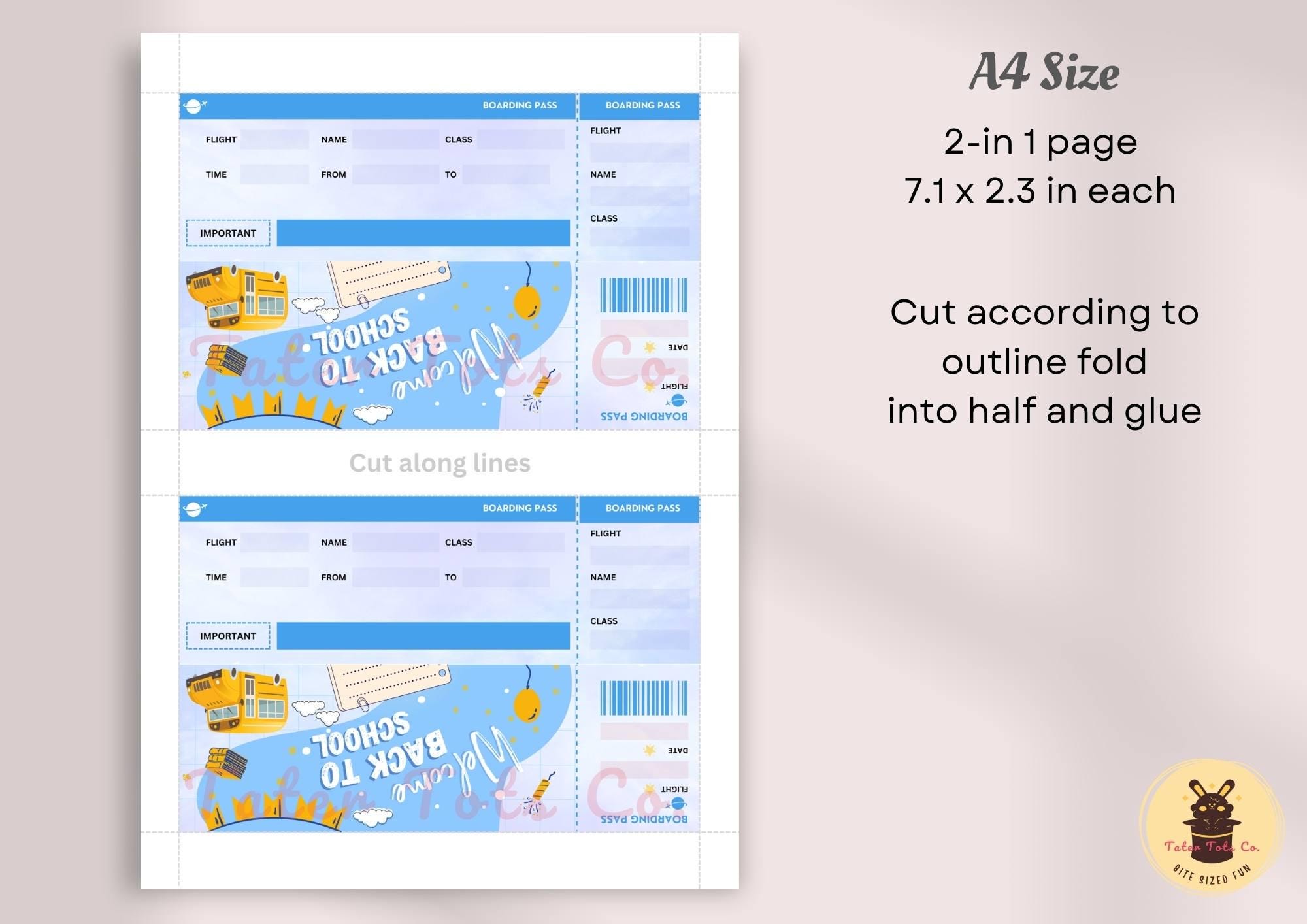 • Editable Back to School Blue Boarding Pass A4 size 2-in-1 cut-out