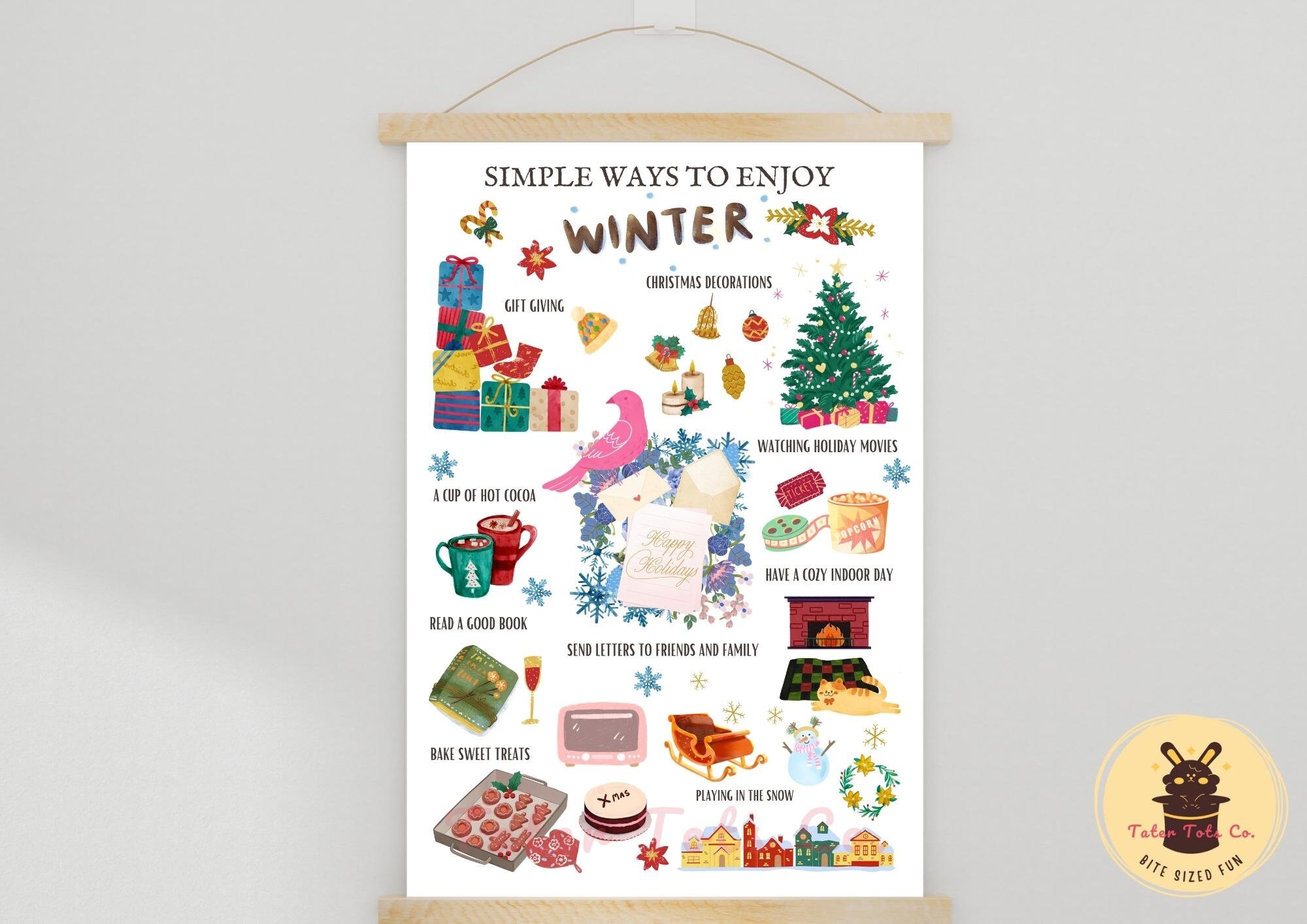 • Simple Ways to Enjoy Winter, Christmas Activity List wall art poster