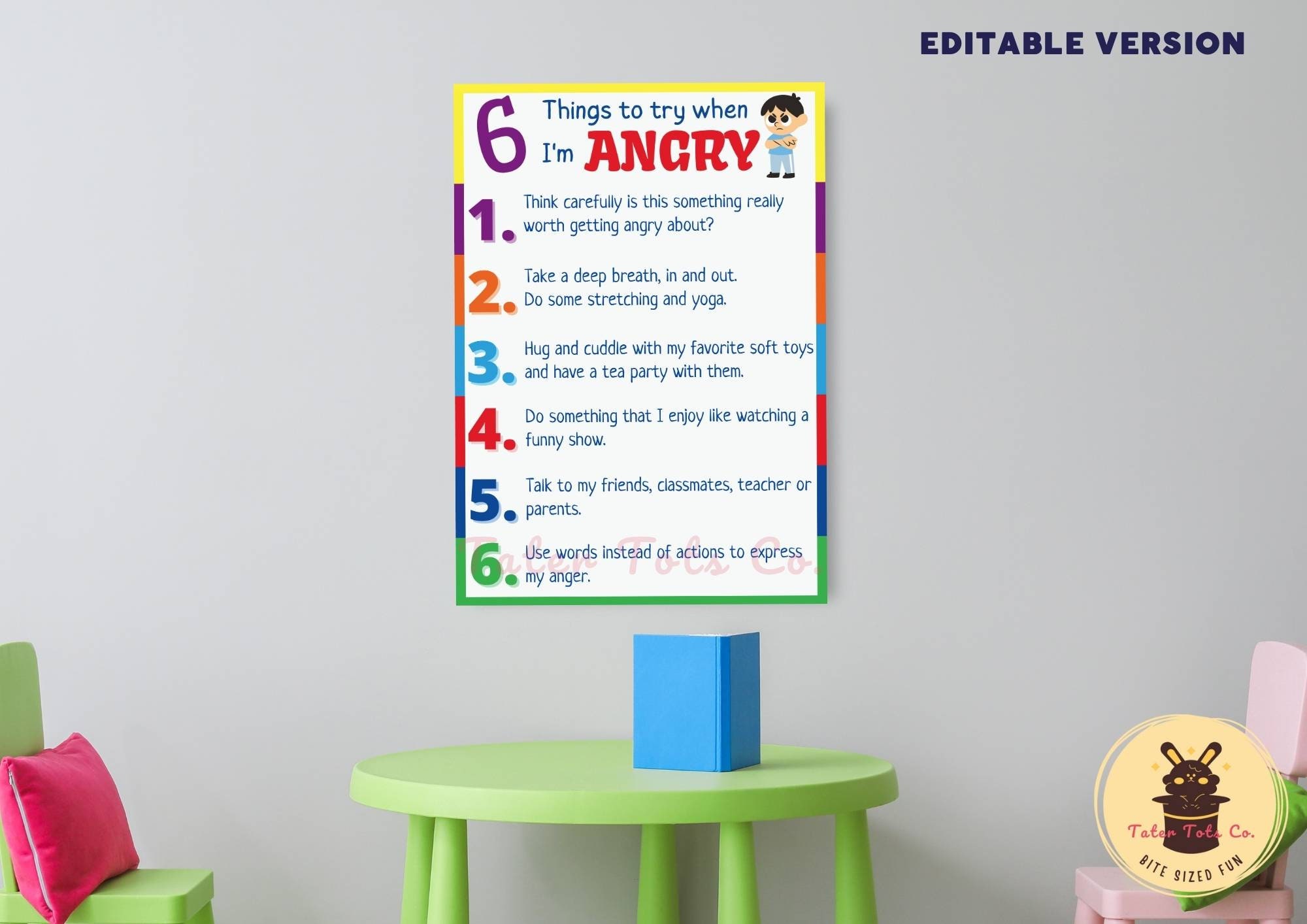 It is well suited to be displayed in calm-down corners, therapy or counselor rooms as a classroom poster, or for homeschool use.