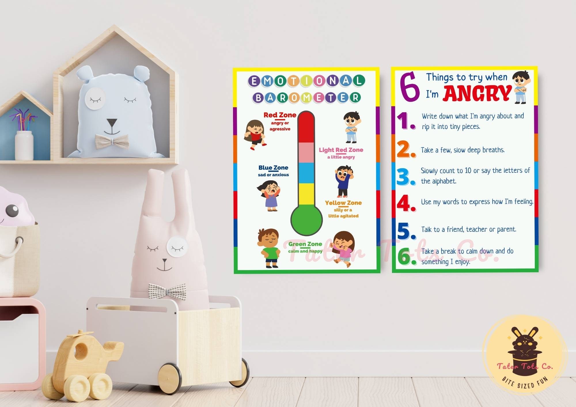 This emotional barometer or thermometer teaches children how to express their emotions healthily by understanding how they feel. It comes with an additional "6 things to try when I'm angry" poster, which complements the emotional barometer poster to reinforce further teaching children how to react when angry.